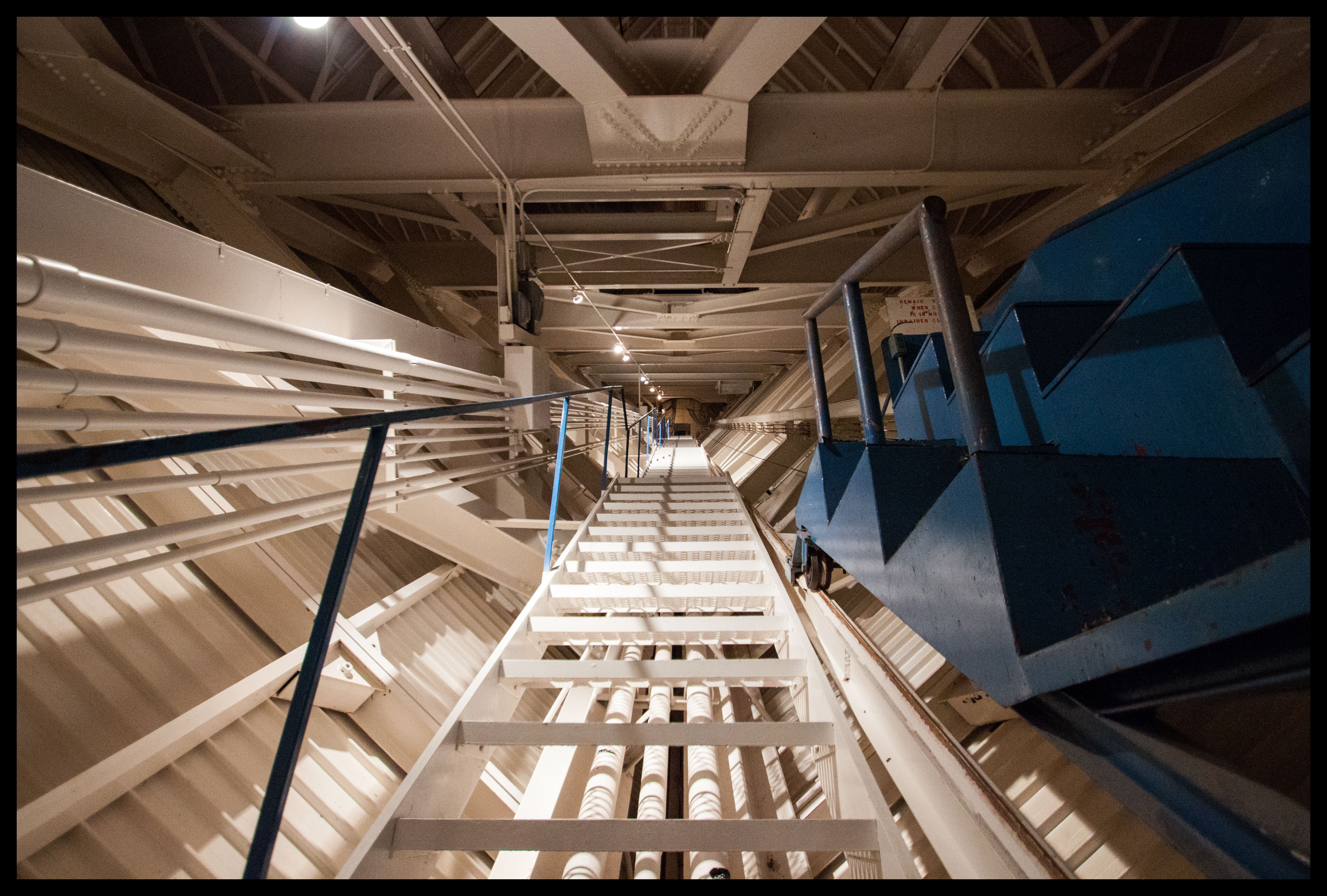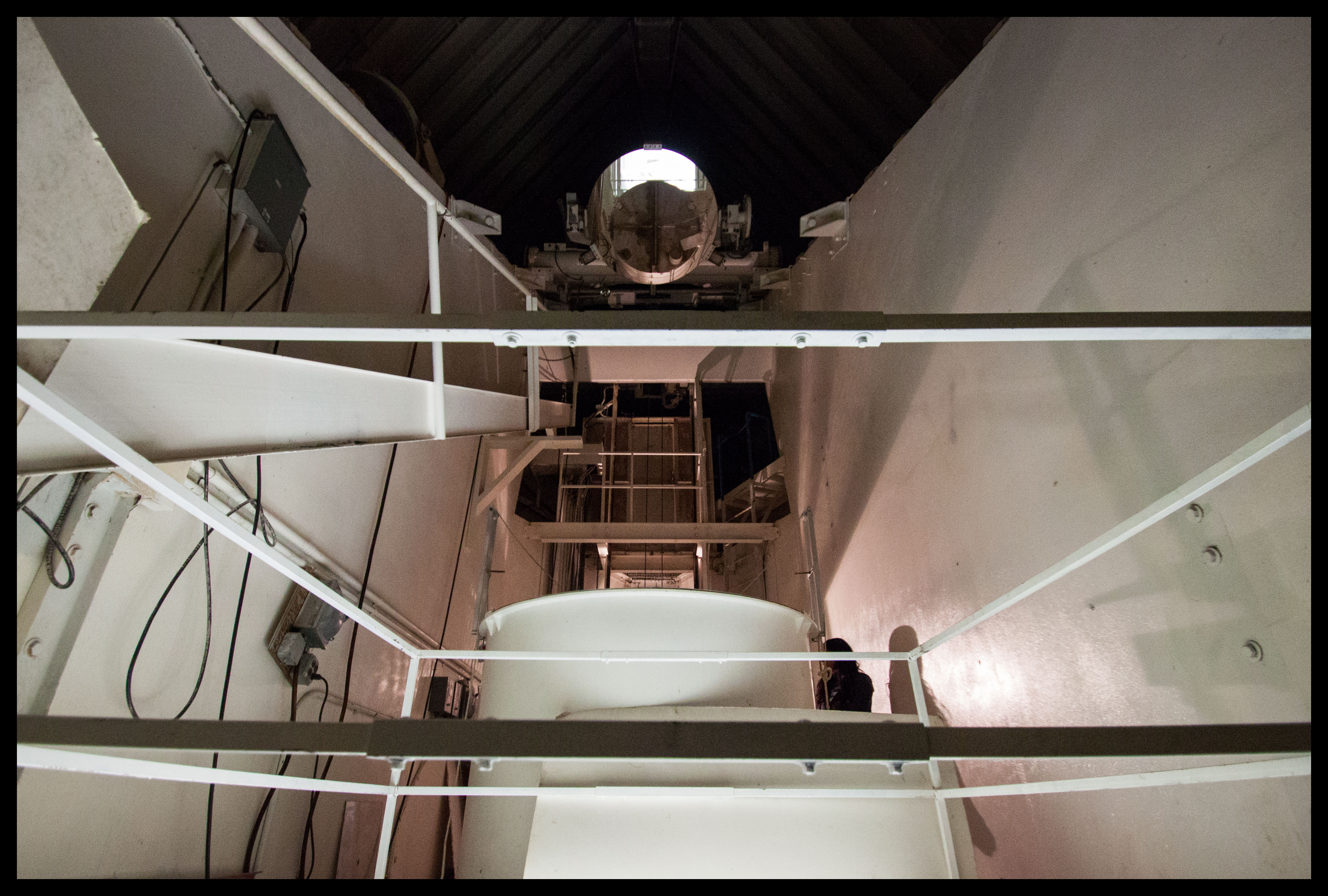 Finally, on April 21, I got the “dead-bodies” tour of the McMath-Pierce Solar Telescope – all of the nooks and crannies that are never seen. I even got to go all the way to the tippity-top! In case you haven’t seen the original Kitt Peak blogpost, an image of the solar telescope is shown below.