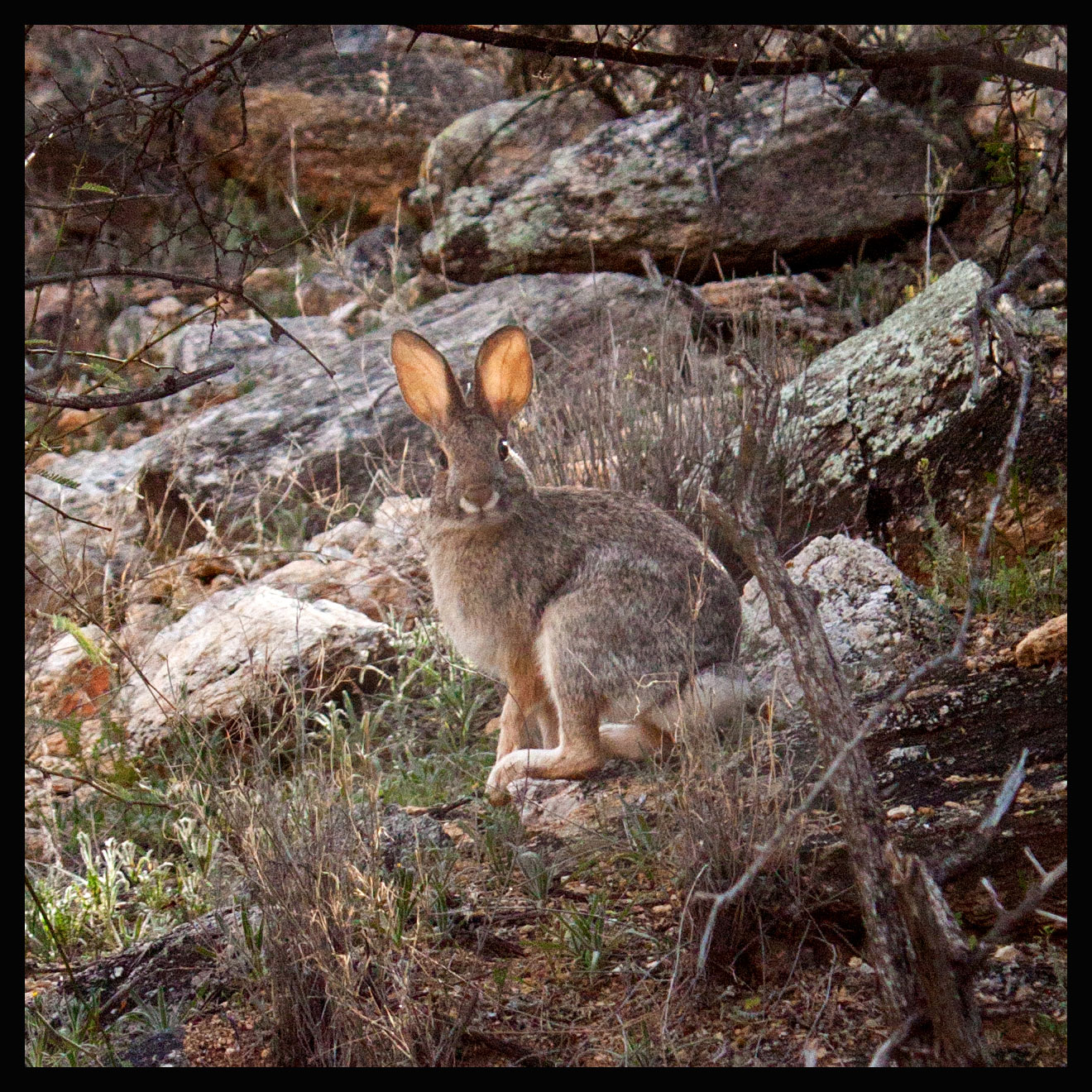 I didn’t want to pay $8 for a tram ride to the trailhead, so I ended up walking the initial 2 miles through the park. The easy route is to walk along the paved road that the tram runs on. However there is a trail parallel to the road that I like to take (it warms you up for the uneven footing you’ll experience in the canyon). Since I was out early, I got lucky and spotted a rabbit!