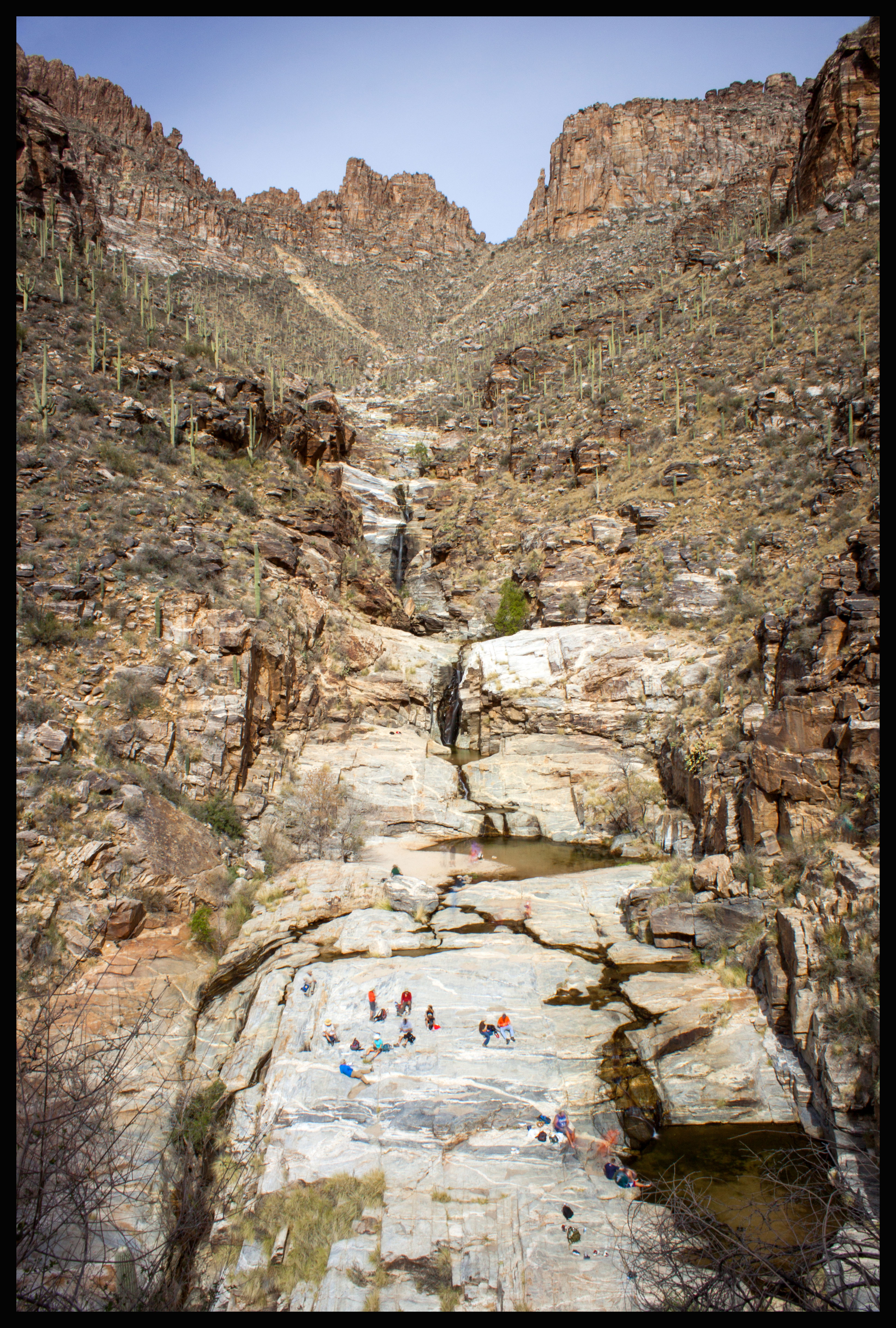I recently spent a day in Sabino Canyon Recreation Area hiking to Seven Falls in Bear Canyon. This was the first hike I took in Tucson and four years later, it is still one of my favorites. Any trail with water in Tucson is exciting, but the river in Bear Canyon flows throughout the year, making it a continuously rewarding hike. At the end, hikers are greeted by a series of seven waterfalls and a few pools of ice cold water for wading and cooling off. It’s a beautiful place to rest up and enjoy a snack before hiking back.