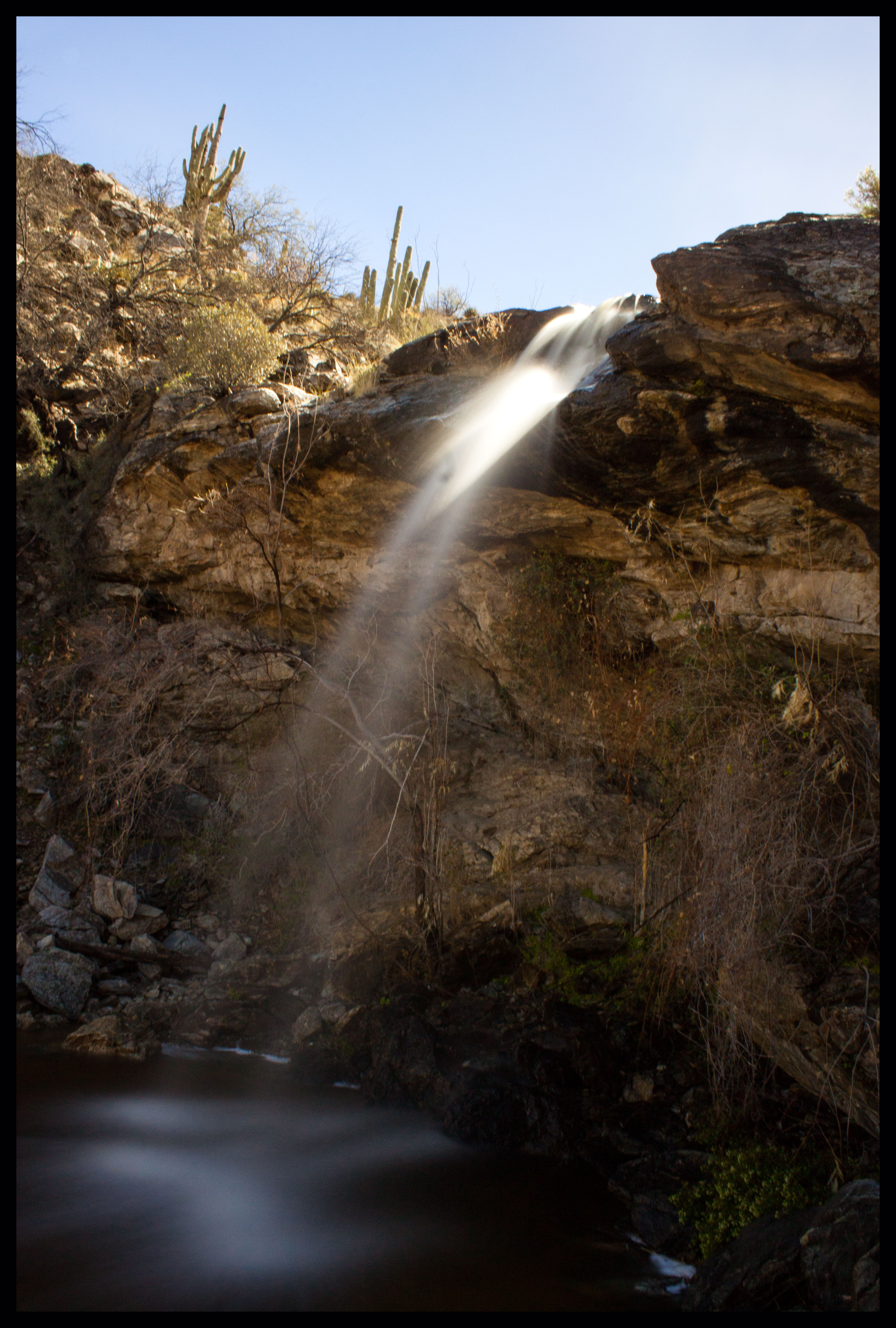 I feel like I keep raving about all of the natural water you can find in Tucson, and it’s because I’ve never realized how much there is to find in the wilderness out here! I think these falls are running year round, but we got lucky and hiked the day after a moderate rainstorm (remember, good for desert waterfalls), which was followed by clear skies and warm, but not hot temperatures.