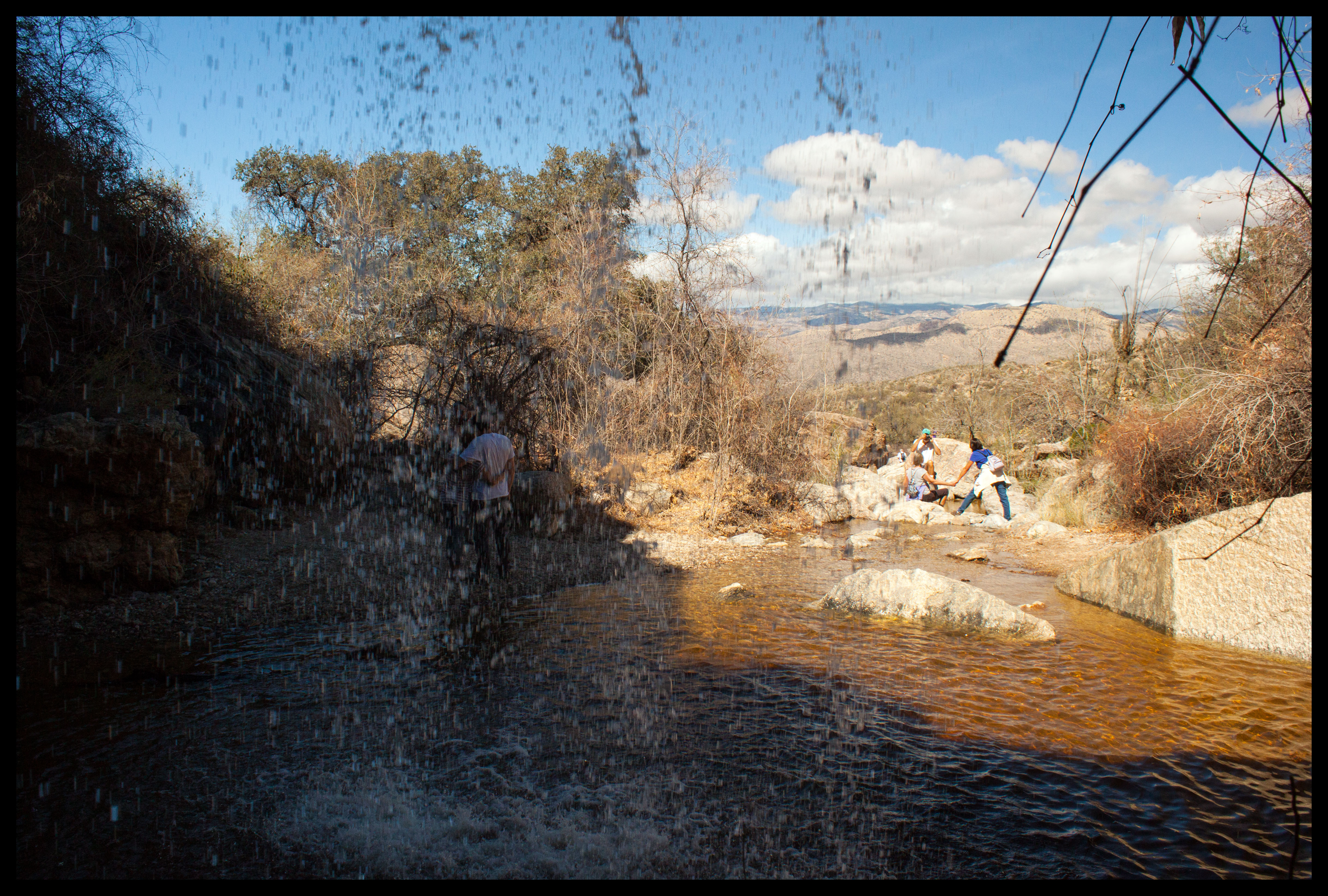 A couple of weeks ago Patrick and I decided to hike to Bridal Wreath Falls in Saguaro National Park East. Most people don’t realize that there are two Saguaro National Park “districts” in Tucson, one to the east of the city and one to the west. The hike follows Douglas Springs Trail and then veers off to reach Bridal Wreath Falls for a total of 6.2 miles roundtrip. It was a pretty easy hike, especially after all we’ve been doing lately, and many people were on the trail with us.