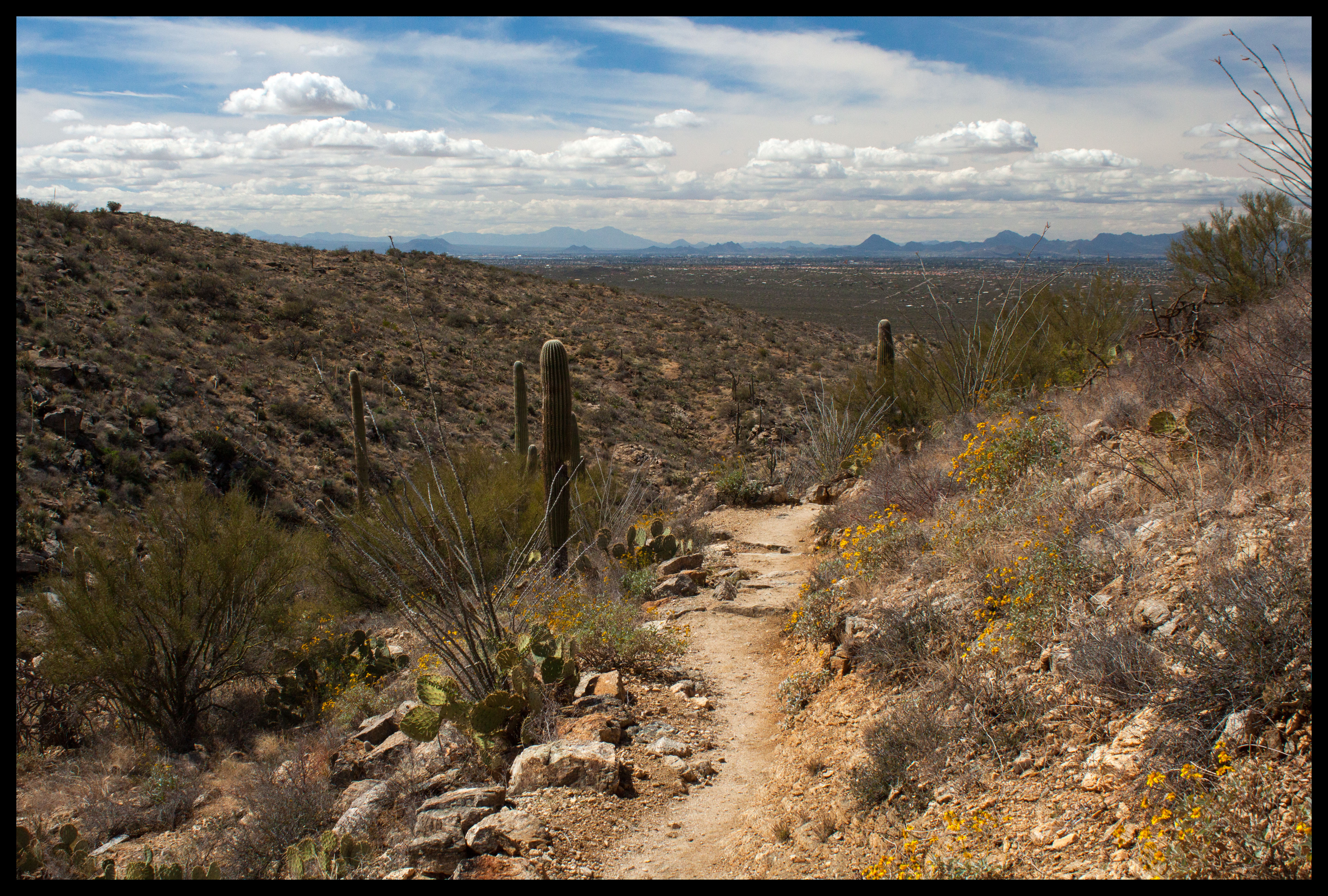 After those first ~0.75 miles we began our climb, and this is where the hike becomes “moderate.” The trail is quick and steep at places, and we along with the other hikers took several breaks. The first part of the climb looks over east Tucson for some beautiful views; after passing over a ridge however, the views toward the city are much more sparse.