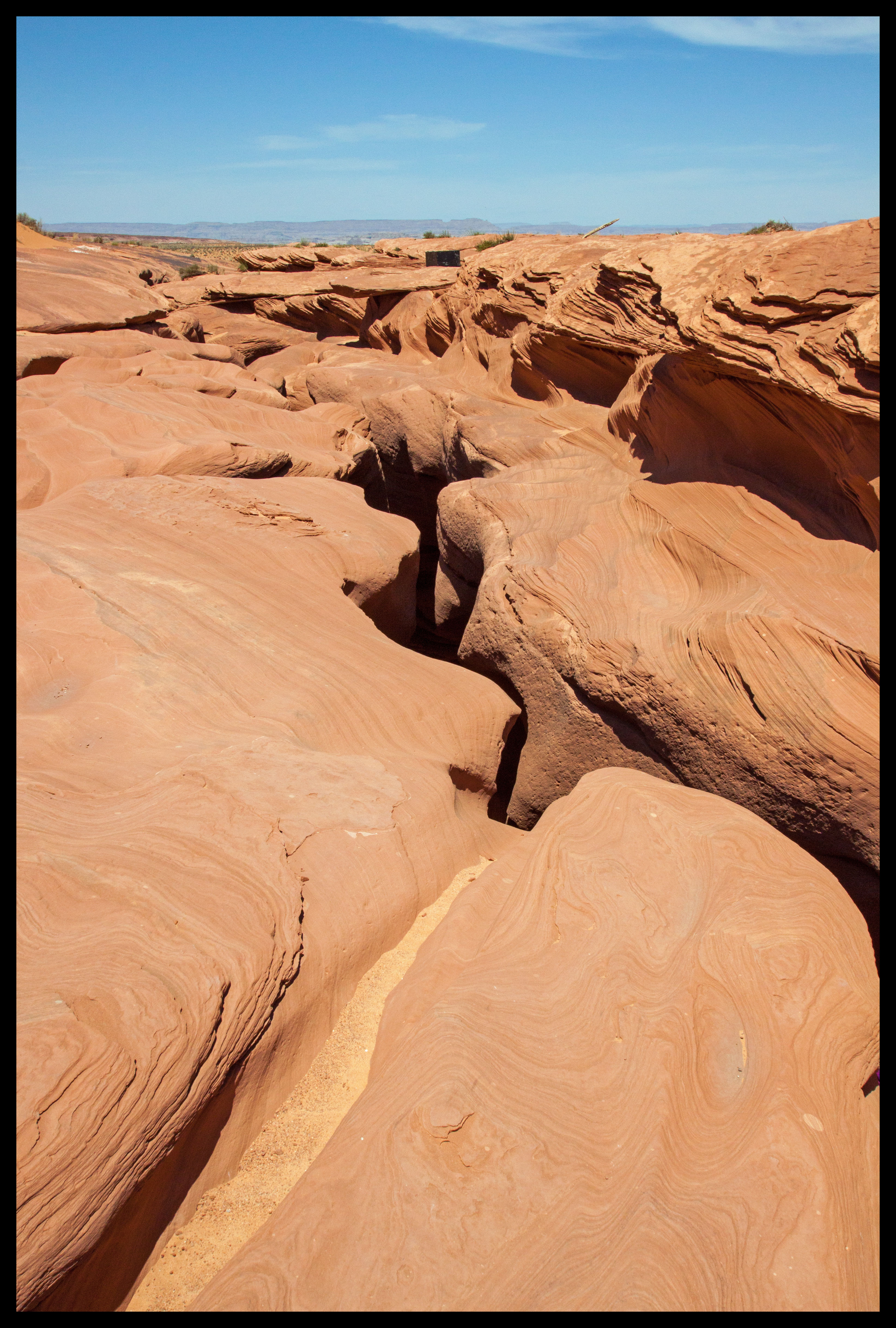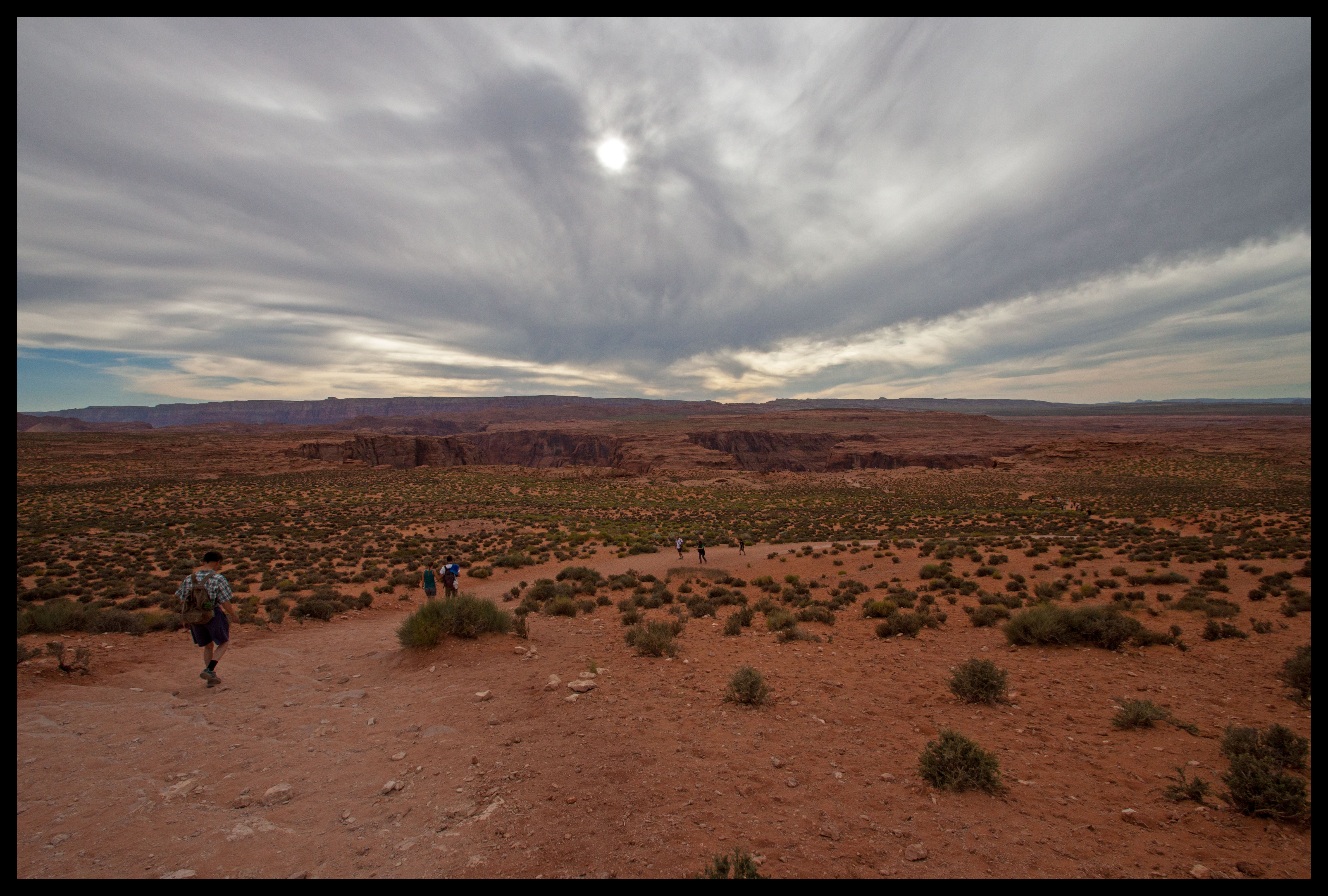 The gradual descent to Horseshoe Bend; the vague outline can be seen in the distance.