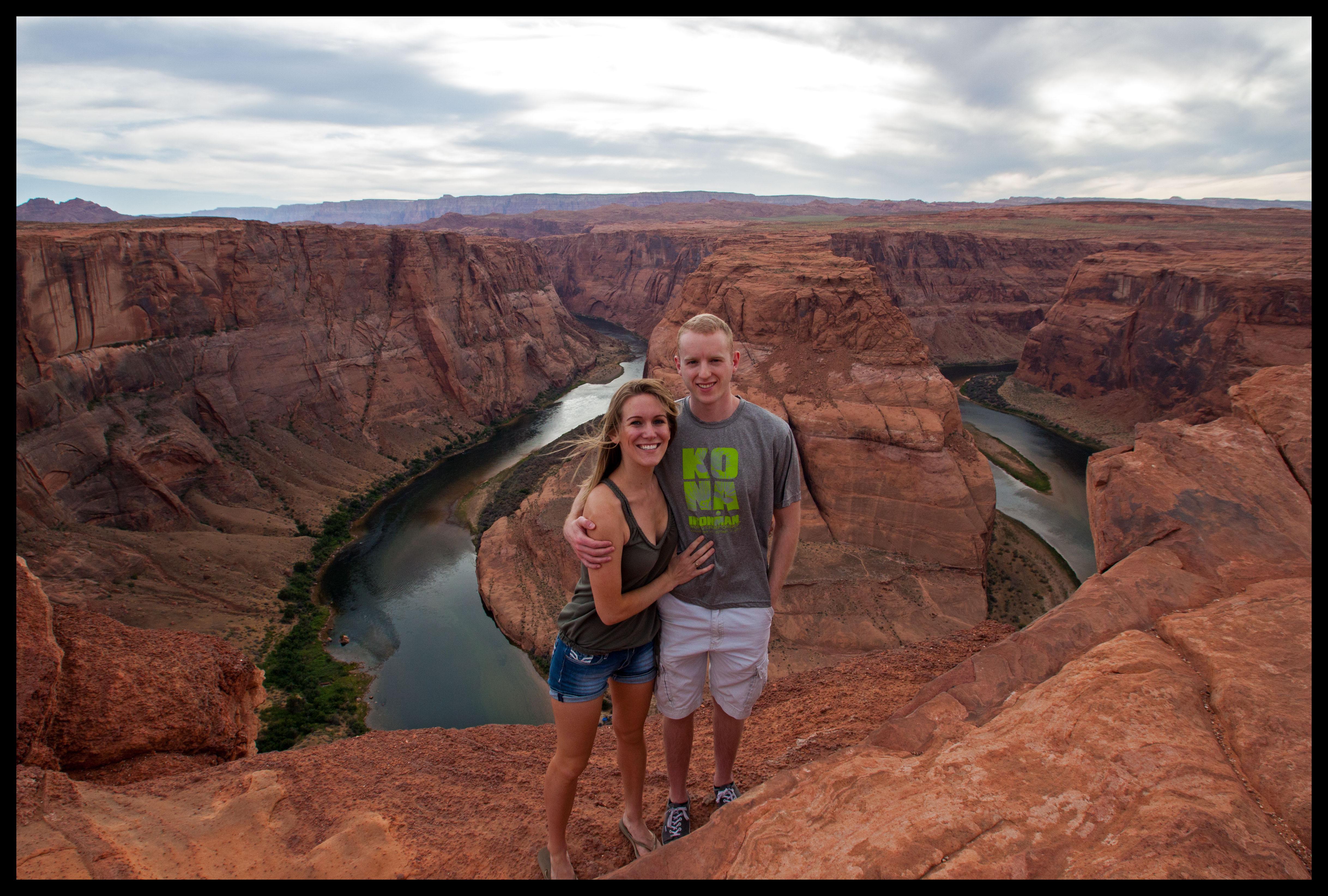 The hike to Horseshoe Bend was nice because you really can’t see the majesty of it until you’re right at the end. The lookout is expansive, so there was plenty of room to spread out from the crowds and end up with practically the same view. No one was crowding for a “front-row seat.” Our intention was to arrive for sunset; while the clouds weren’t the best-suited for that, we could still see the colors of the canyon changing with each passing moment.