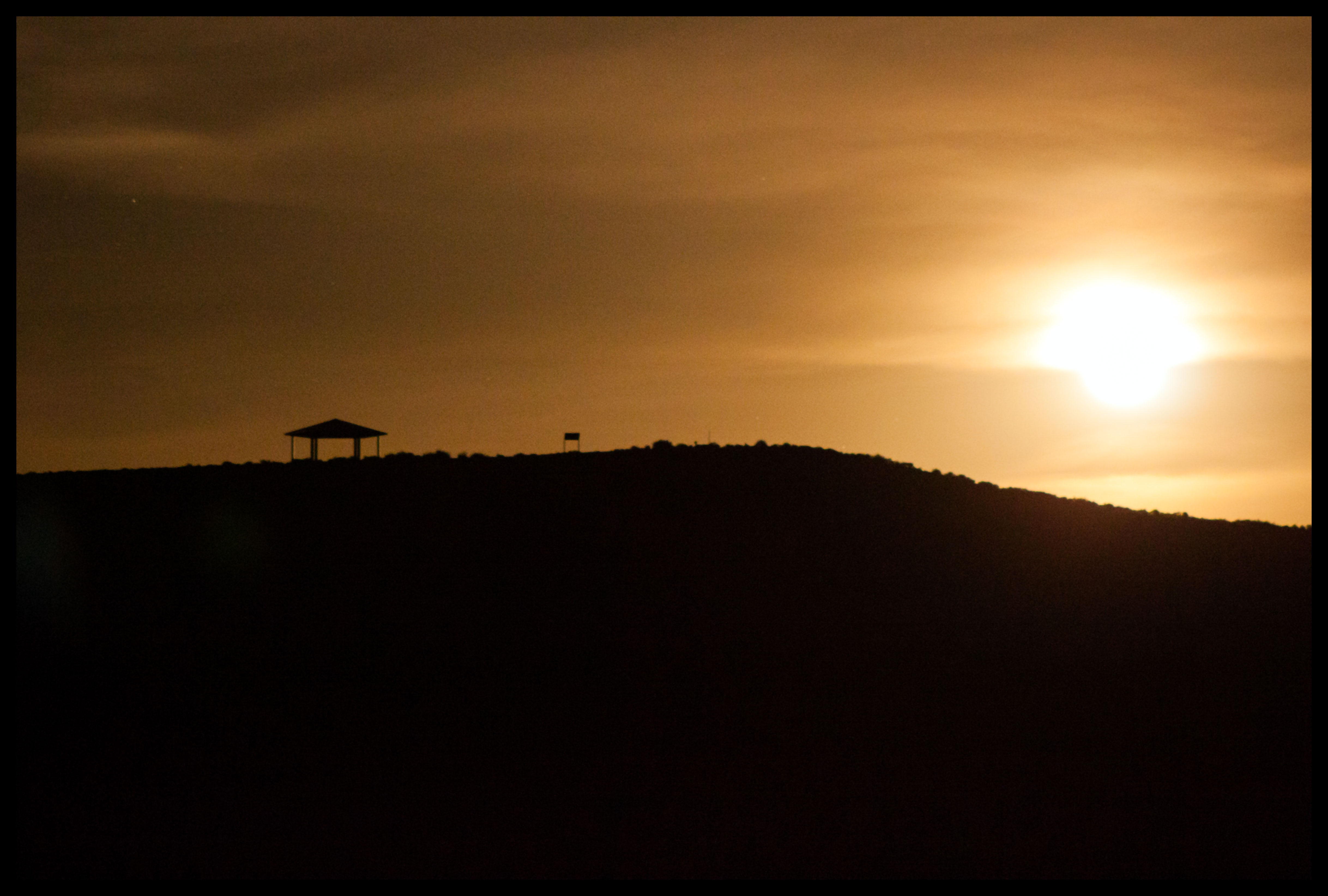 Since we were planning on staying very late, we brought all of my camera gear and a complete picnic, with dinner, drinks and snacks for later. As a side note, the site was much cleaner than expected. Guests must be good about cleaning up after themselves. Before we knew it, it was 9:00 and the moon was about to rise. As it got darker, we could see the glow from two campsites in the canyon, making us jealous of their overnight visit.