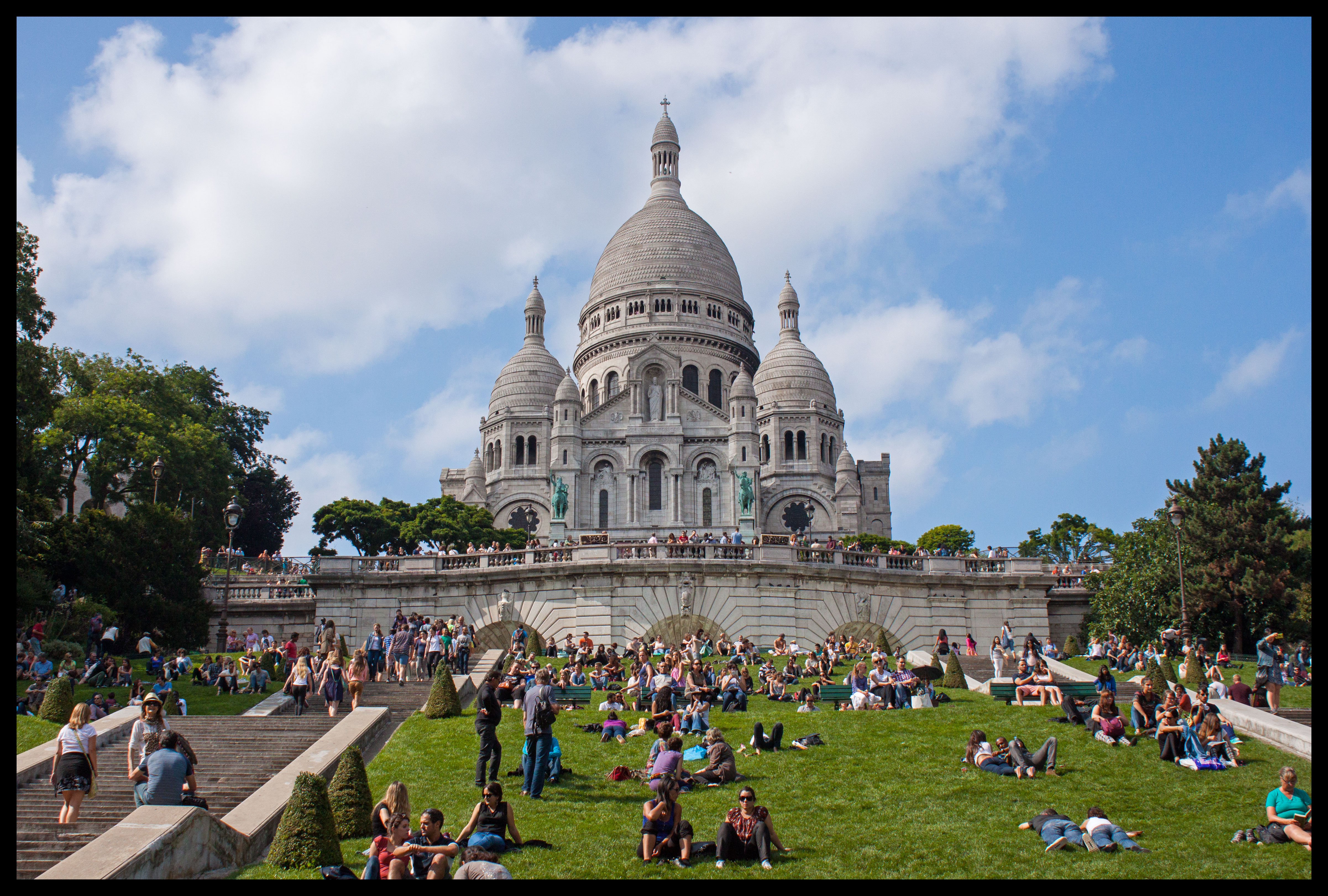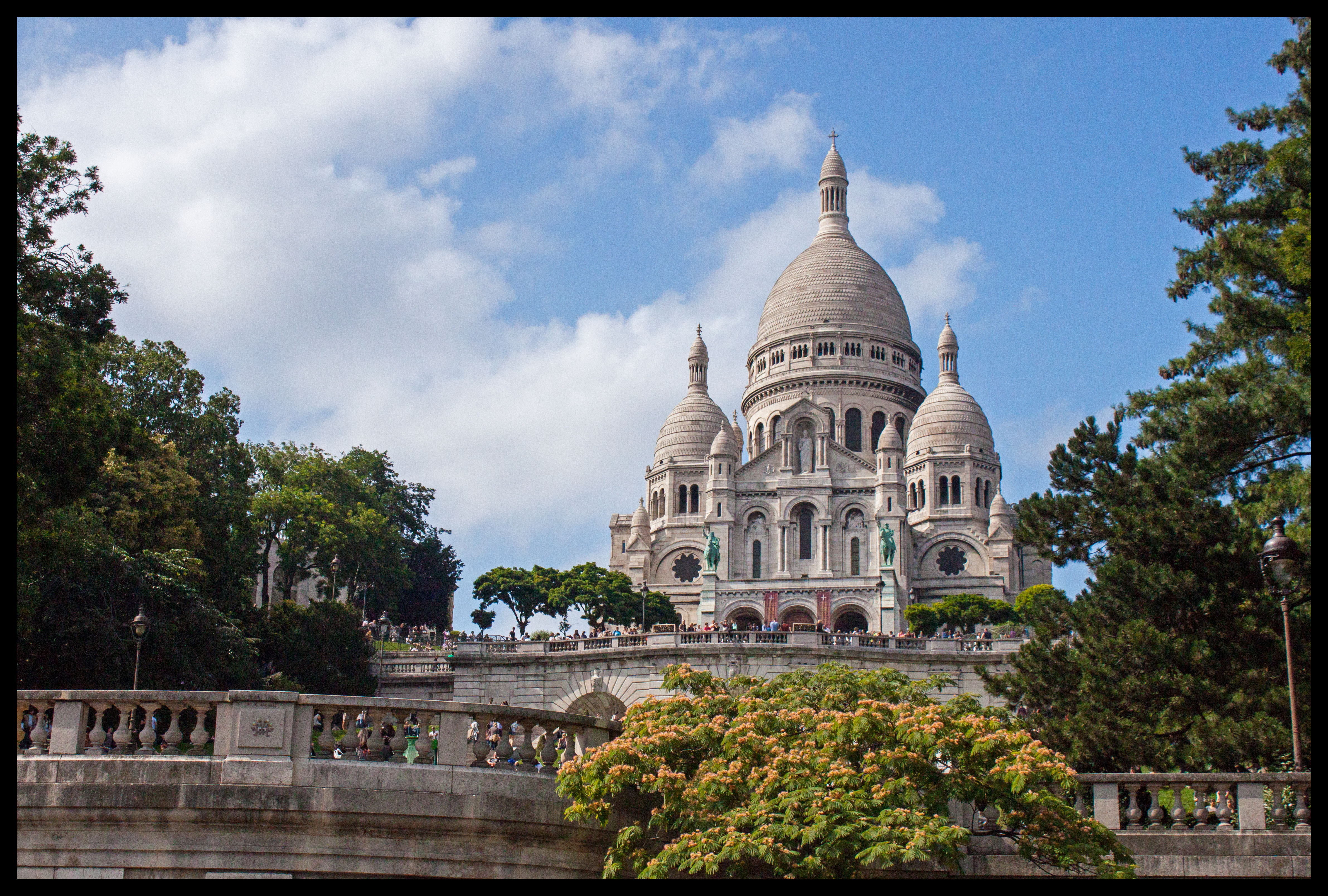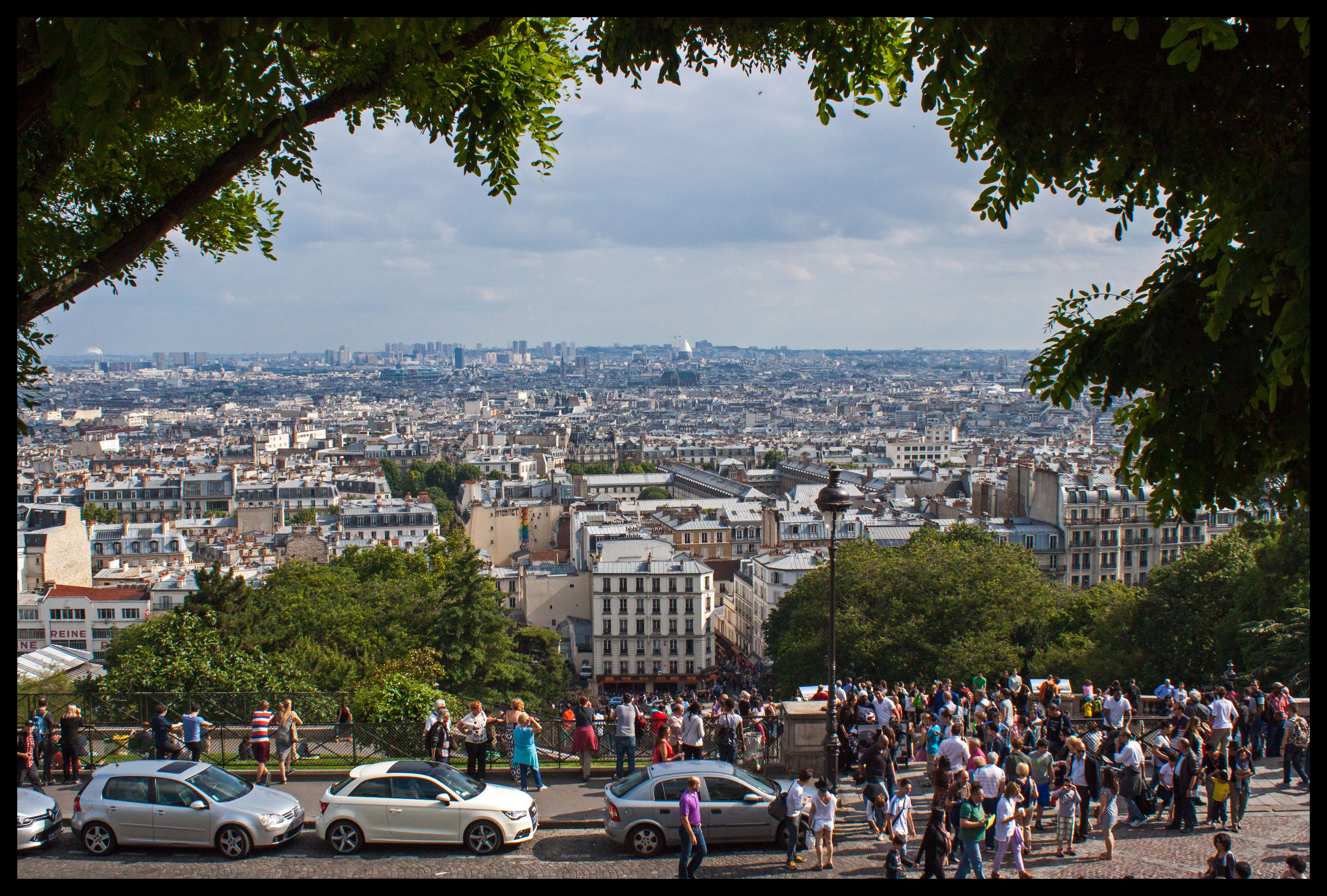 There are several different levels along the approach to Sacré-Cœur, each offering slightly different panoramic views of the surrounding city. The dome of Sacré-Cœur is the second highest point in the city, only behind the Eiffel Tower.