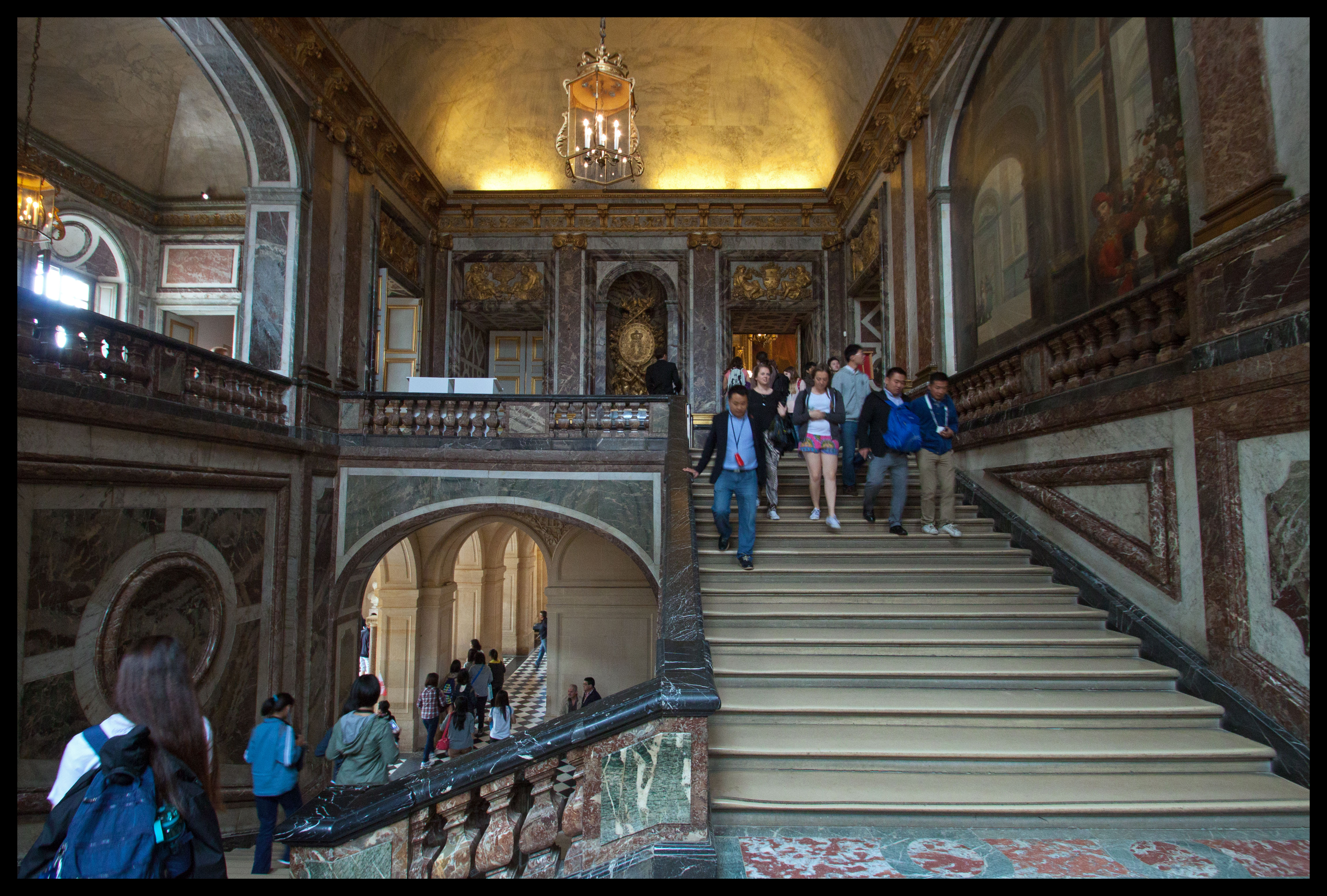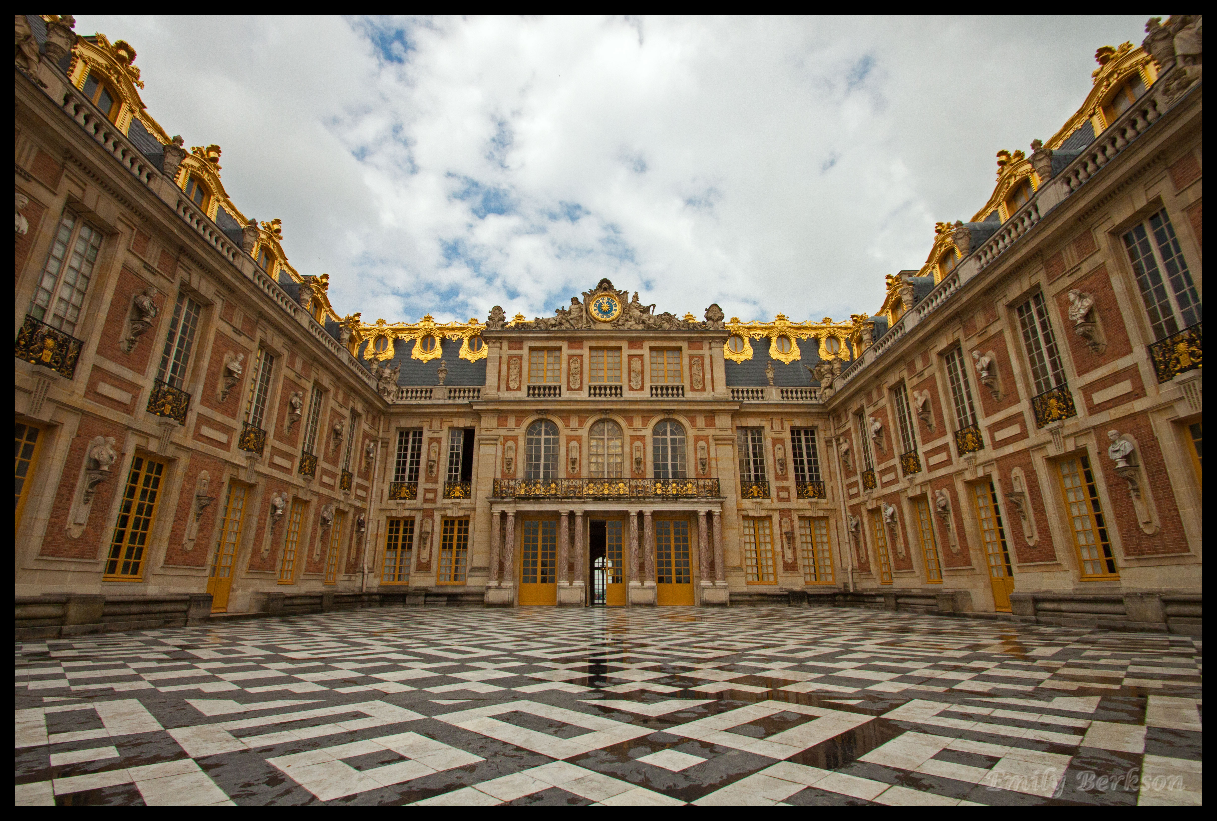 La cour de Marbre – The Marble Courtyard, part of the original palace designed for King Louis VIII. (This is one of my favorite photos of the day; I think the rain on the marble and the perspective almost make it seem like a funhouse.)