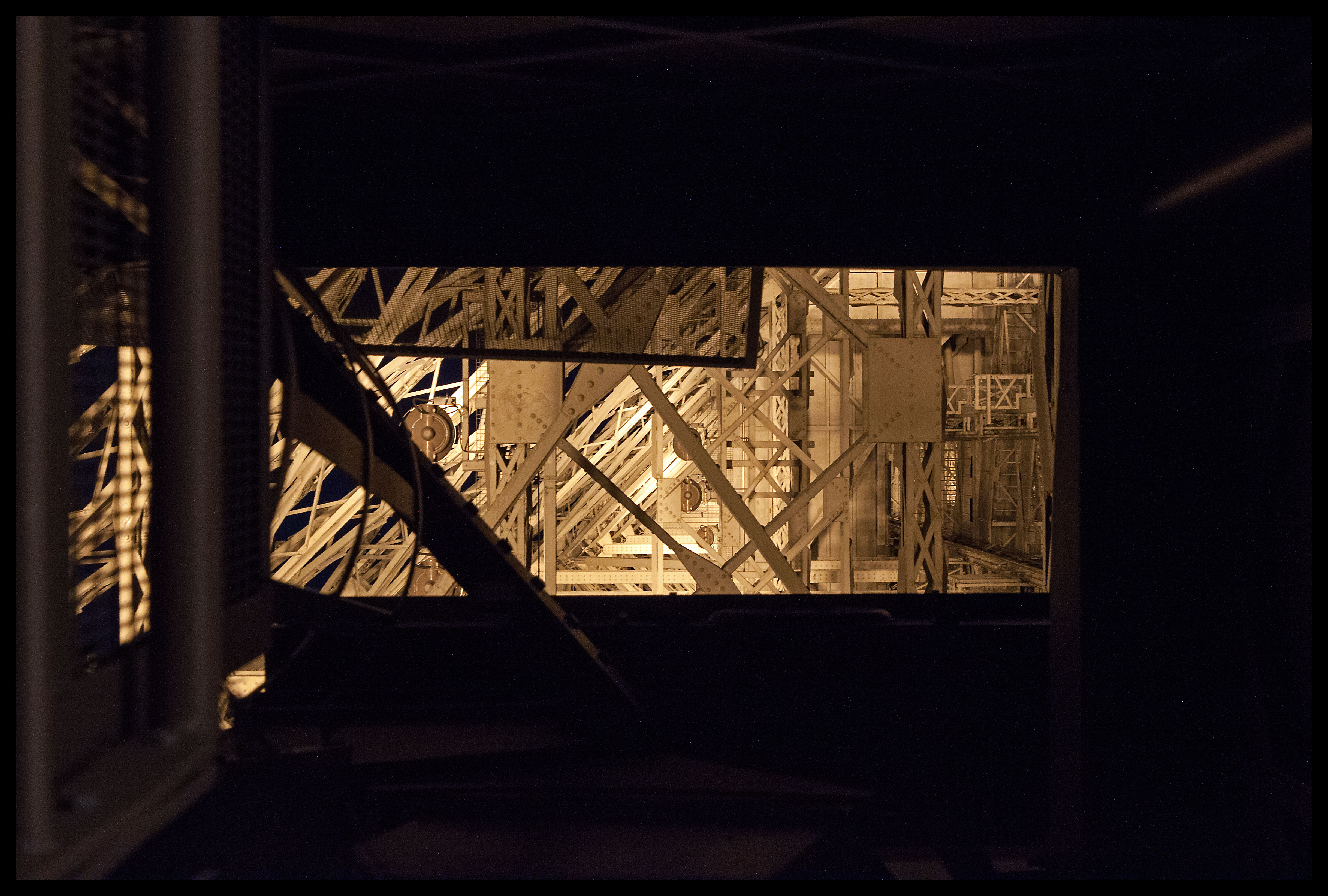 We got through security fast enough, and the tickets were worth it; there were still extensive lines even at 9:00pm. We had to wait a bit for the elevator, which was the size of a small room. There were easily about 30 people in it at a time. I can’t say I’ve ever ridden an elevator at an angle before!