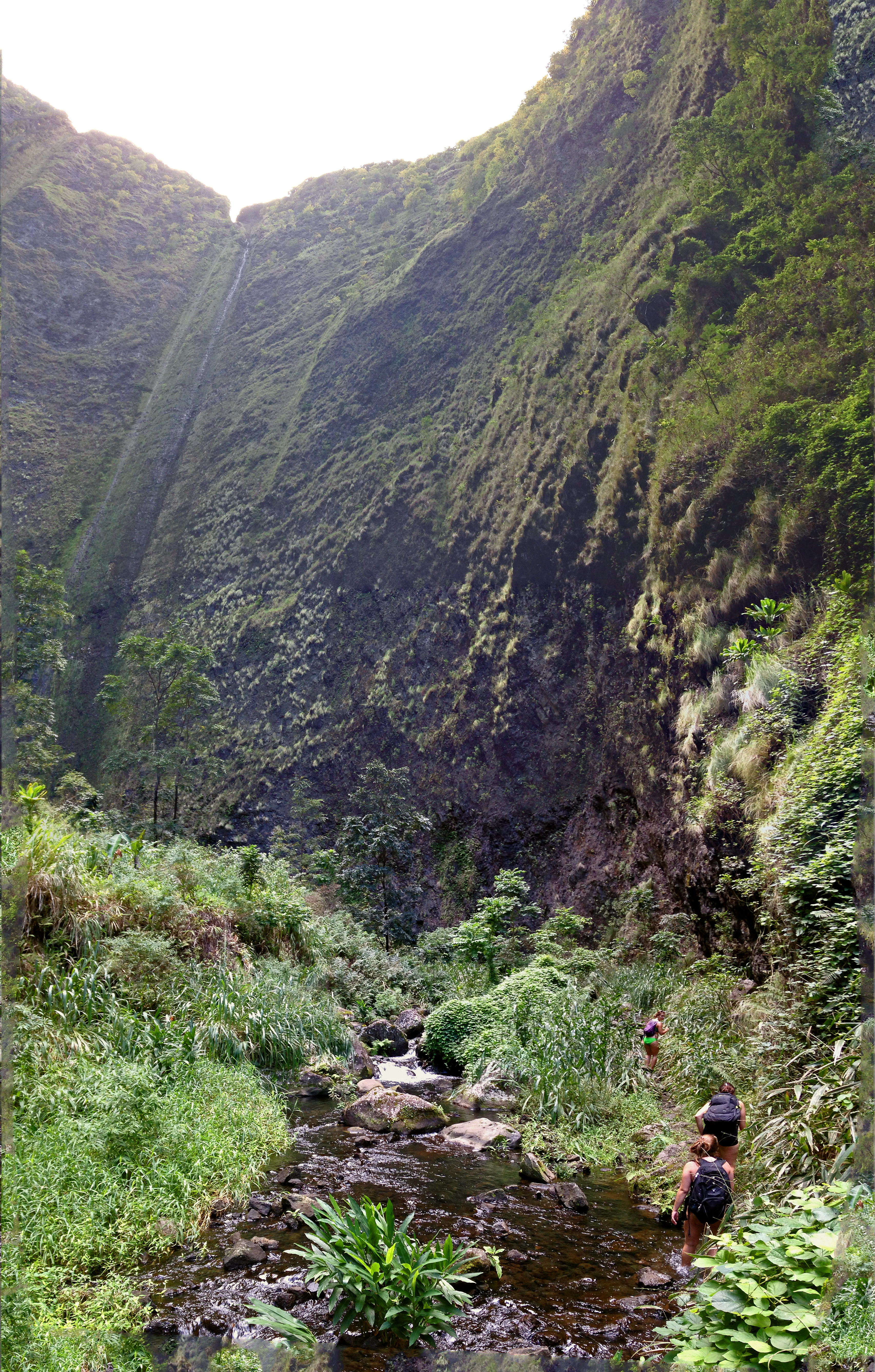 Hiilawe Falls is located at the back of Waipio Valley. The hike itself is only two miles, but it is on a road with an average grade of 25-40% followed by a mile upstream a river. I was sore for days after doing this hike.