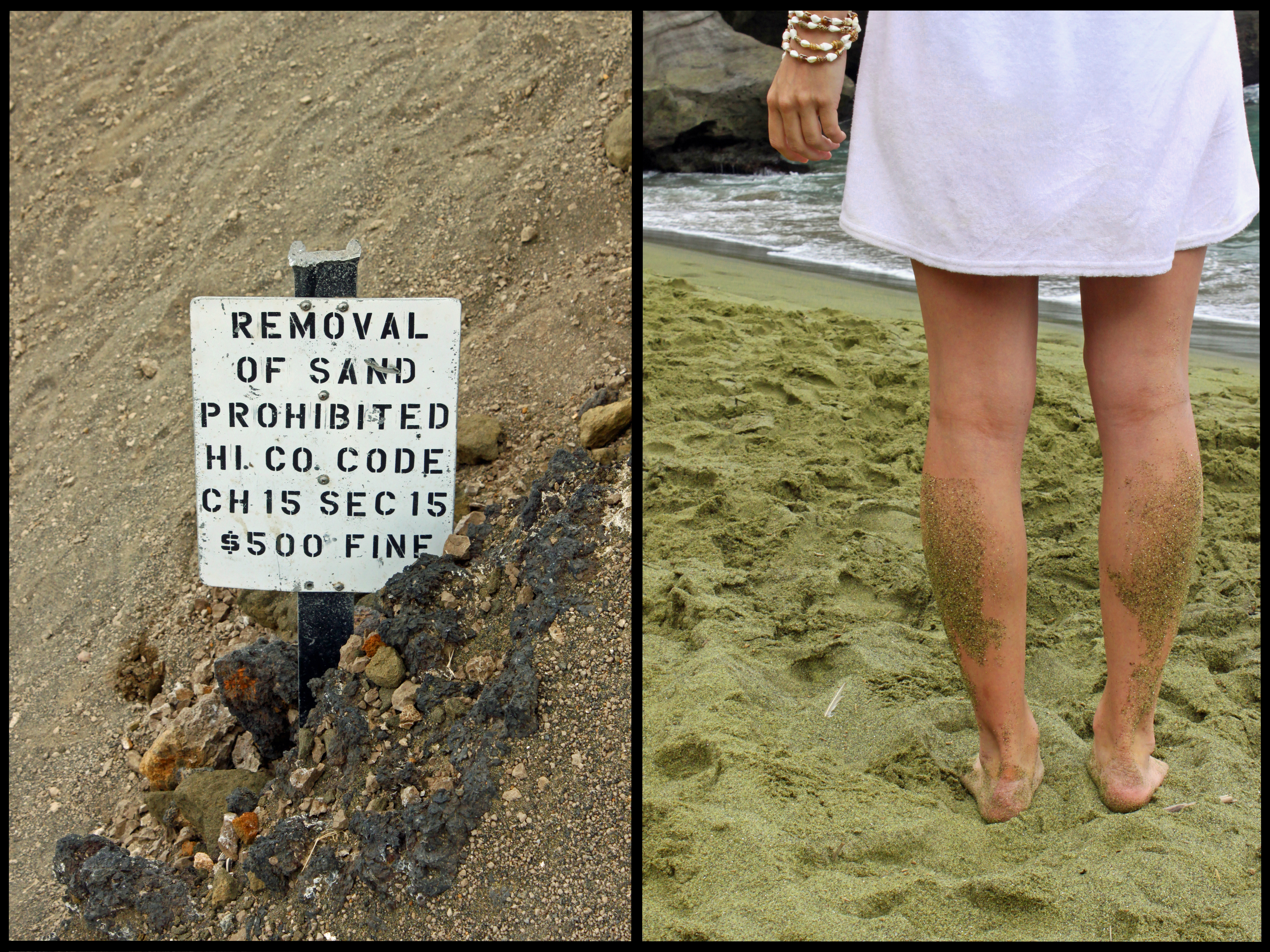 Green Sands is about a two mile walk from the parking lot. You can pay locals $5/person, or $15/car (it varies), to drive you there in 4WD, but it’s not something you would want to attempt with a rent-a-car. There are many different roads leading towards Papakōlea Beach, continuously intersecting. As long as you travel near the coastline, you should be able to tell when you’ve reached the beach, if only by the 4WD cars parked there.