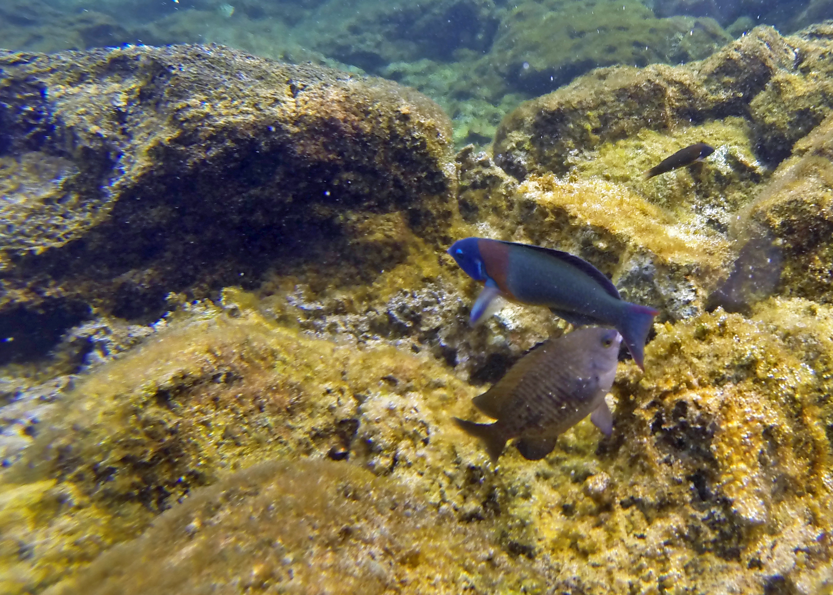 Because the pools are so shallow and it is easy to scrape the lava rocks, I’ve seen this called “intermediate” snorkeling. None of us had snorkeled more than once or twice and we managed okay by just being cautious.