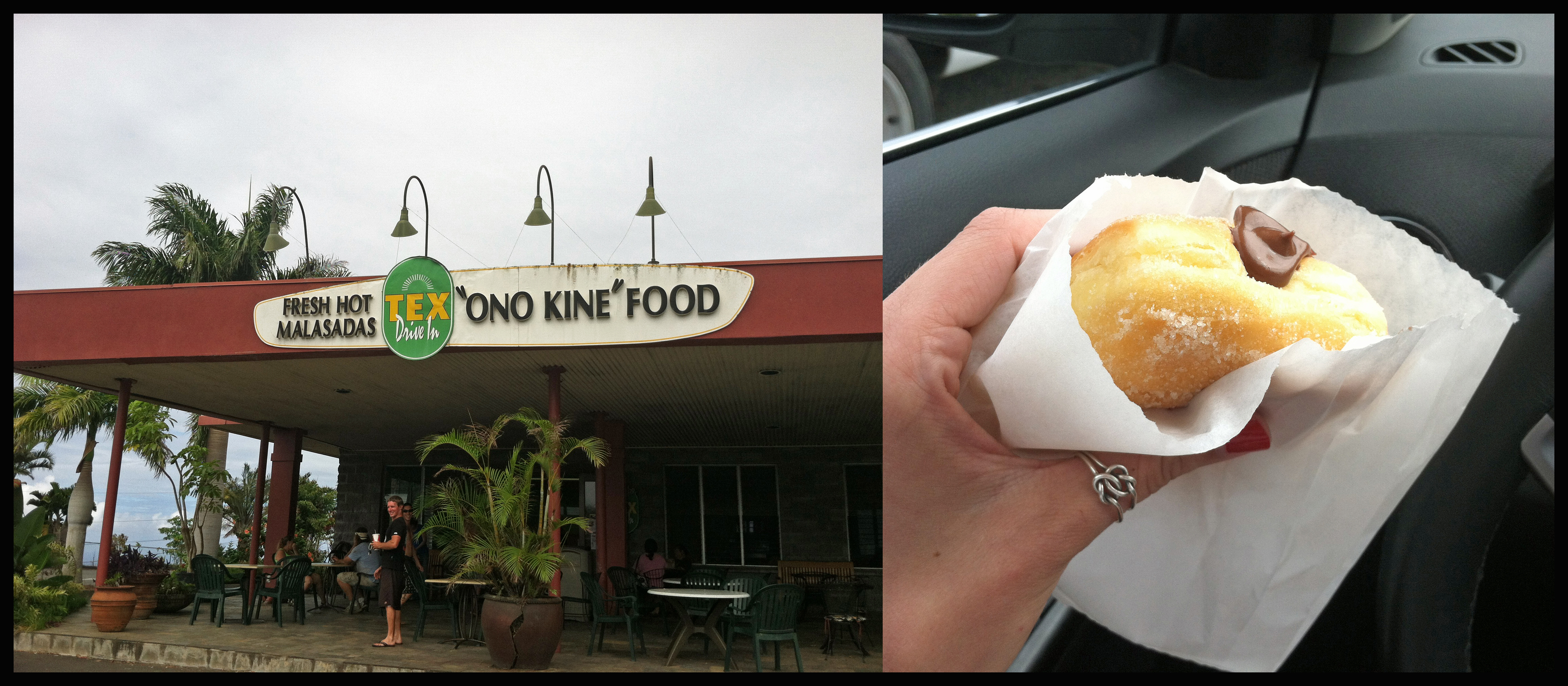 Tex Drive-In was recommended to me by several locals down here in Hilo, and also by my magazine. After that hike down into Waipi’o Valley, I was looking forward to it. I can’t say I enjoyed my lunch very much, but the real reason to come here is apparently for the malasadas, which is like the Hawaiian version of a donut. They’re actually Portuguese, and Wikipedia has a much more delicious description than I could give: “A malasada (or malassada, from Portuguese “mal-assada” = “light-roasted”) (similar to filhós) is a Portuguese confection, made of egg-sized balls of yeast dough that are deep-fried in oil and coated with granulated sugar.” Is your mouth watering yet? You can get them plain or have them injected with fruits and creams. I chose chocolate for my first malasada experience, and I plan on having many more!