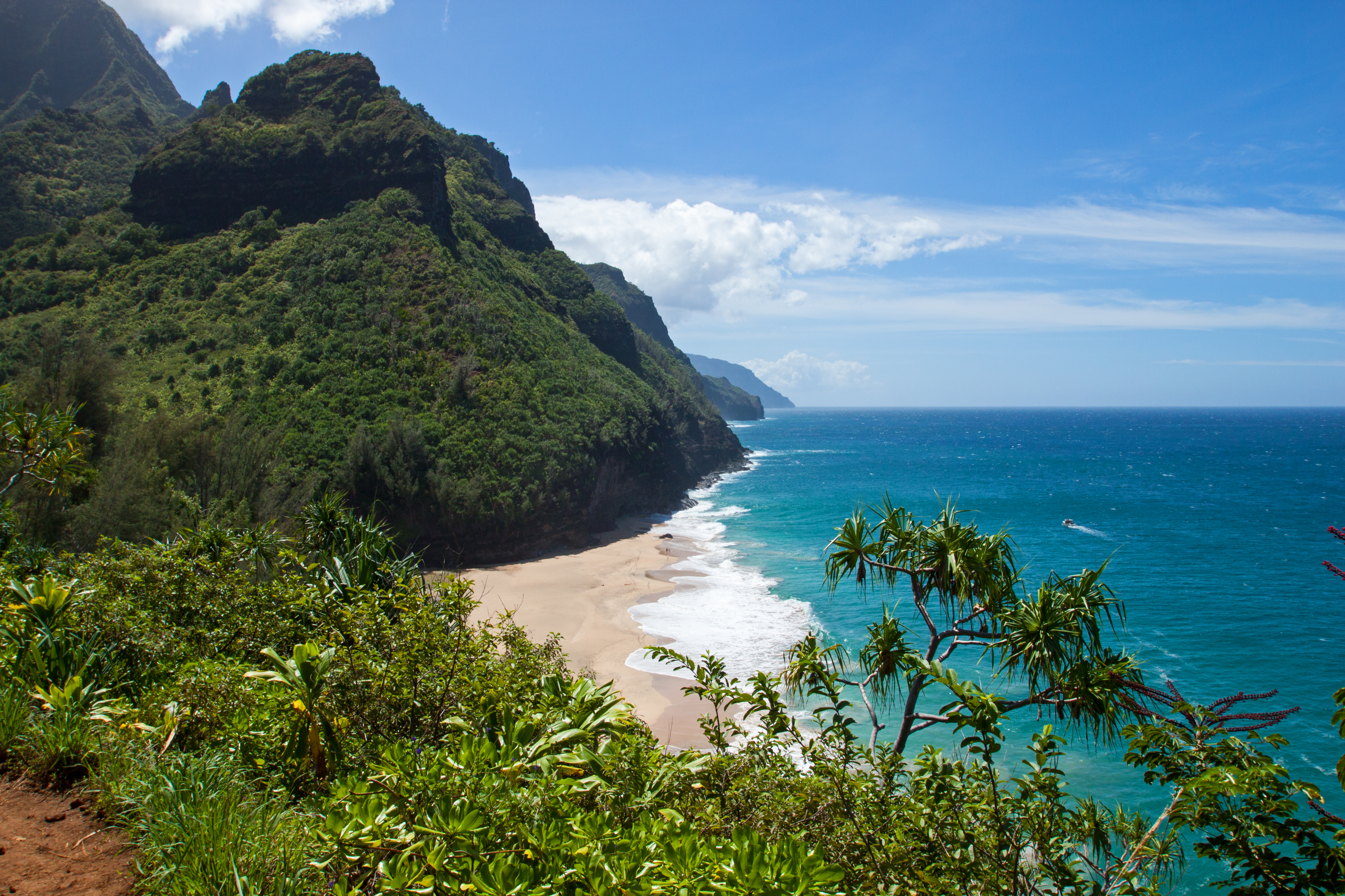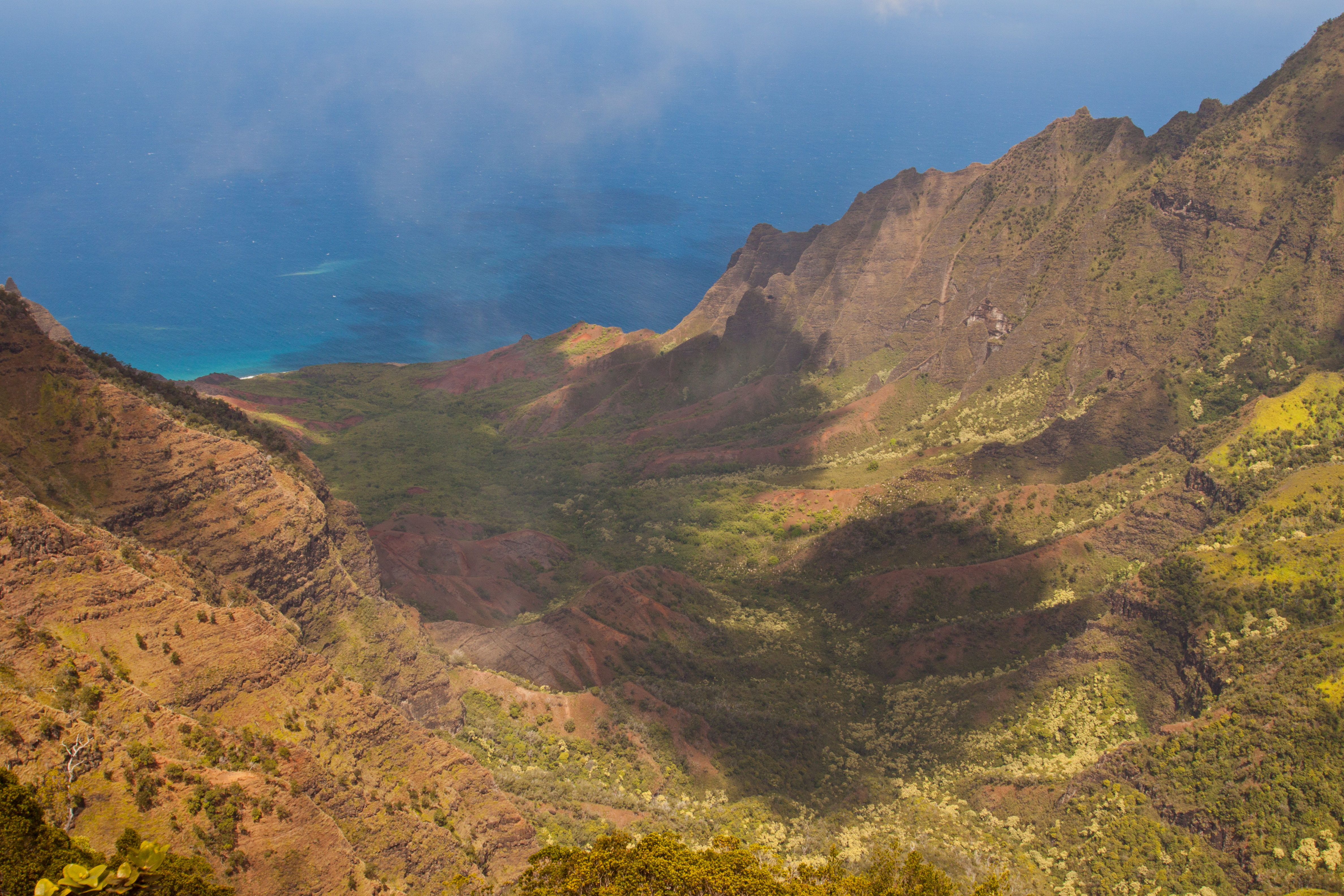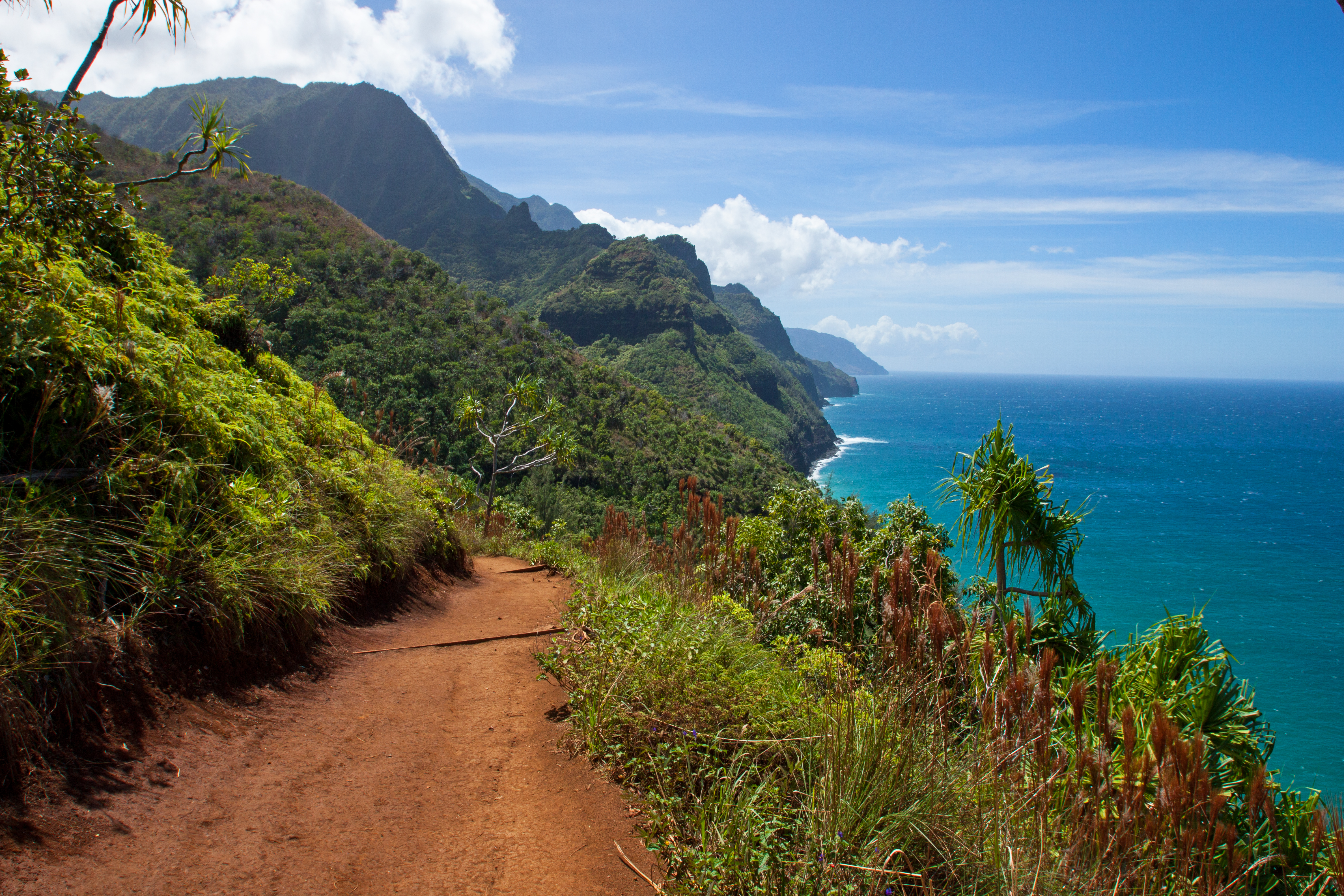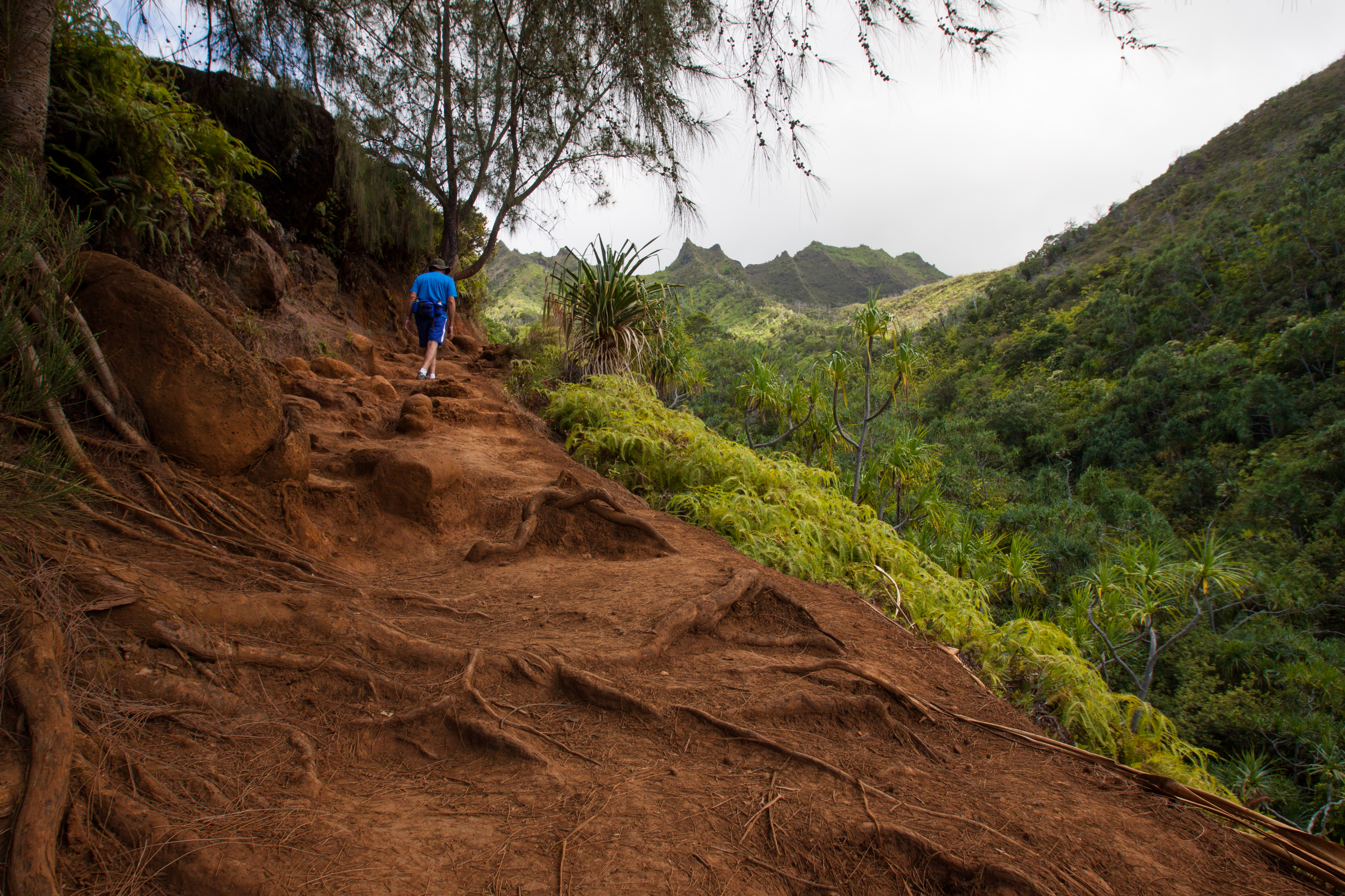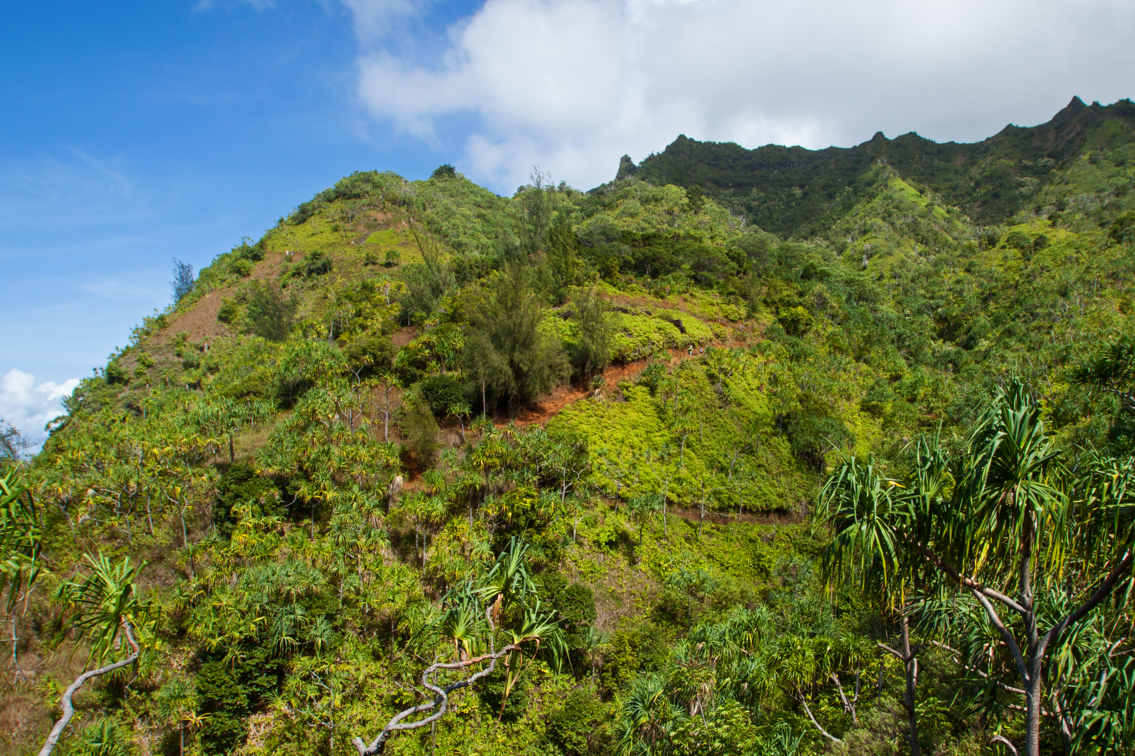 The trail ascends and descends several times in just two miles, climbing in and out of valleys along the Na Pali coast.