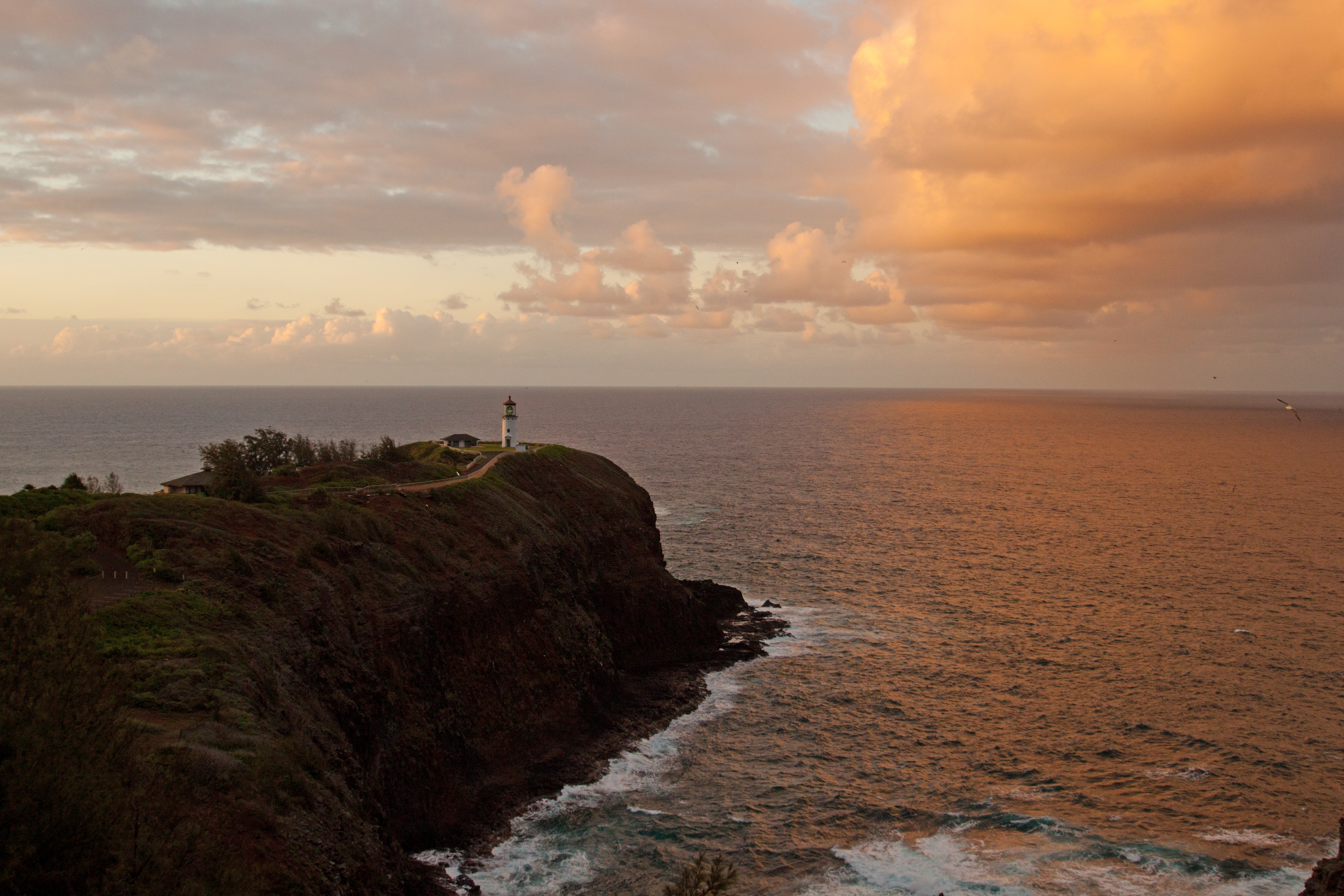 Kilauea Lighthouse sits on the northernmost tip of Kauai. Built in 1913, it guided ships traveling between Hawaii and the Orient. It also played a crucial role in realigning the pilots attempting the first flight from California to Hawaii in 1927. The lighthouse is now on the National Register of Historic Places and receives hundreds of thousands of visitors per year. We arrived just as the sun was setting.