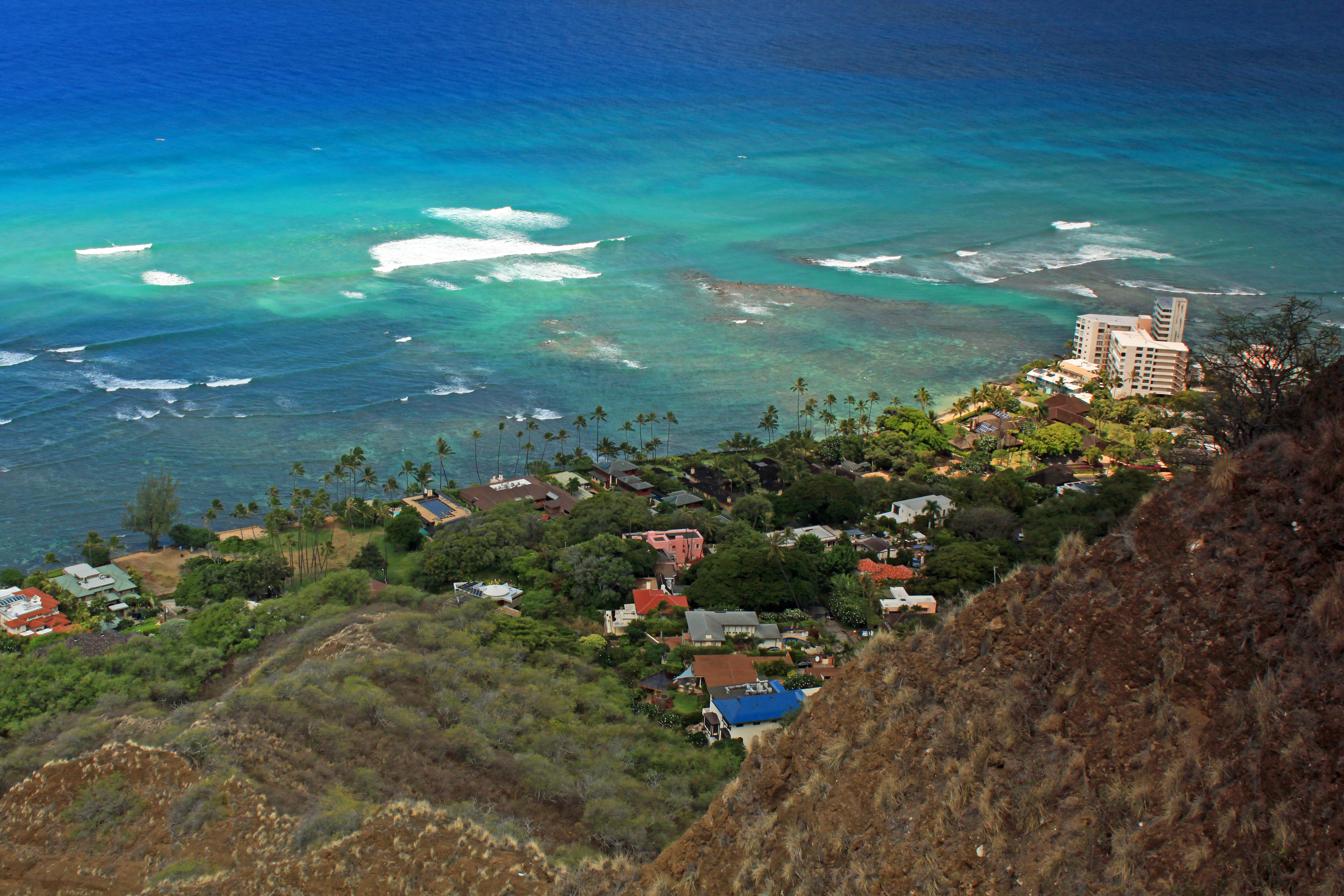 Diamond Head is about a five minute drive outside of Waikiki (if you’re staying on the East side like we did). Diamond Head is a crater formed about 300,000 years ago, and it is almost perfectly circular in shape. The hike itself is less than a mile, but mostly unpaved and climbing to the summit is pretty grueling under the hot sun. It ascends over five hundred feet in that short distance, and the reward is beautiful views of Waikiki, Honolulu and the Pacific Ocean looking toward Maui.