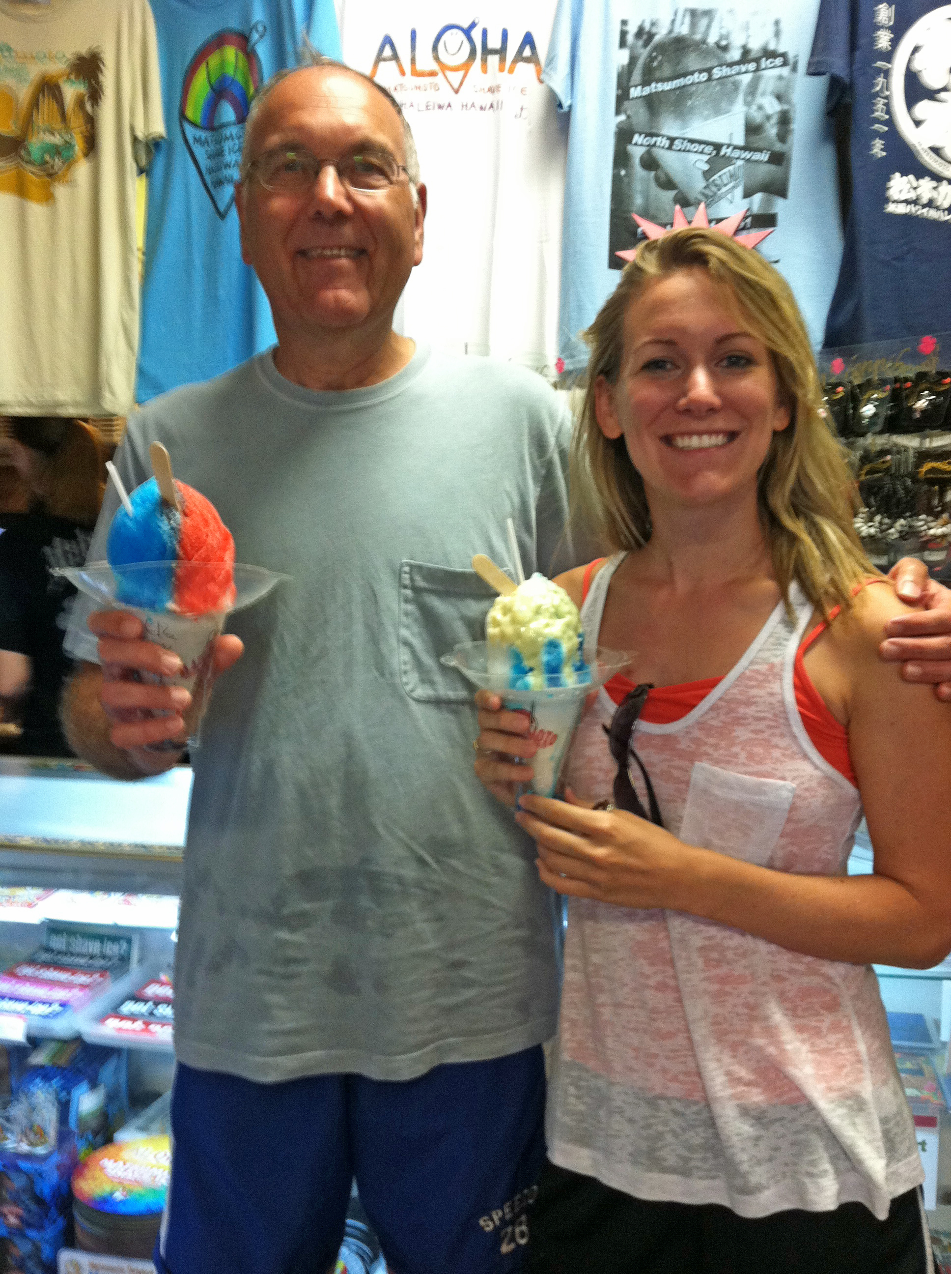 When my dad and I returned to Oahu at the end of our journey, we repeated many of the things Kim and I had done earlier this summer. Other than that, we relaxed! There were tickets to go see Pearl Harbor, but that was missed due to the government shutdown. On our second full day, we ended up at Sunset Beach again, and returned to Haleiwa where we got some Matsumoto Shave Ice (seemingly the best on the island) and watched a stunning sunset.