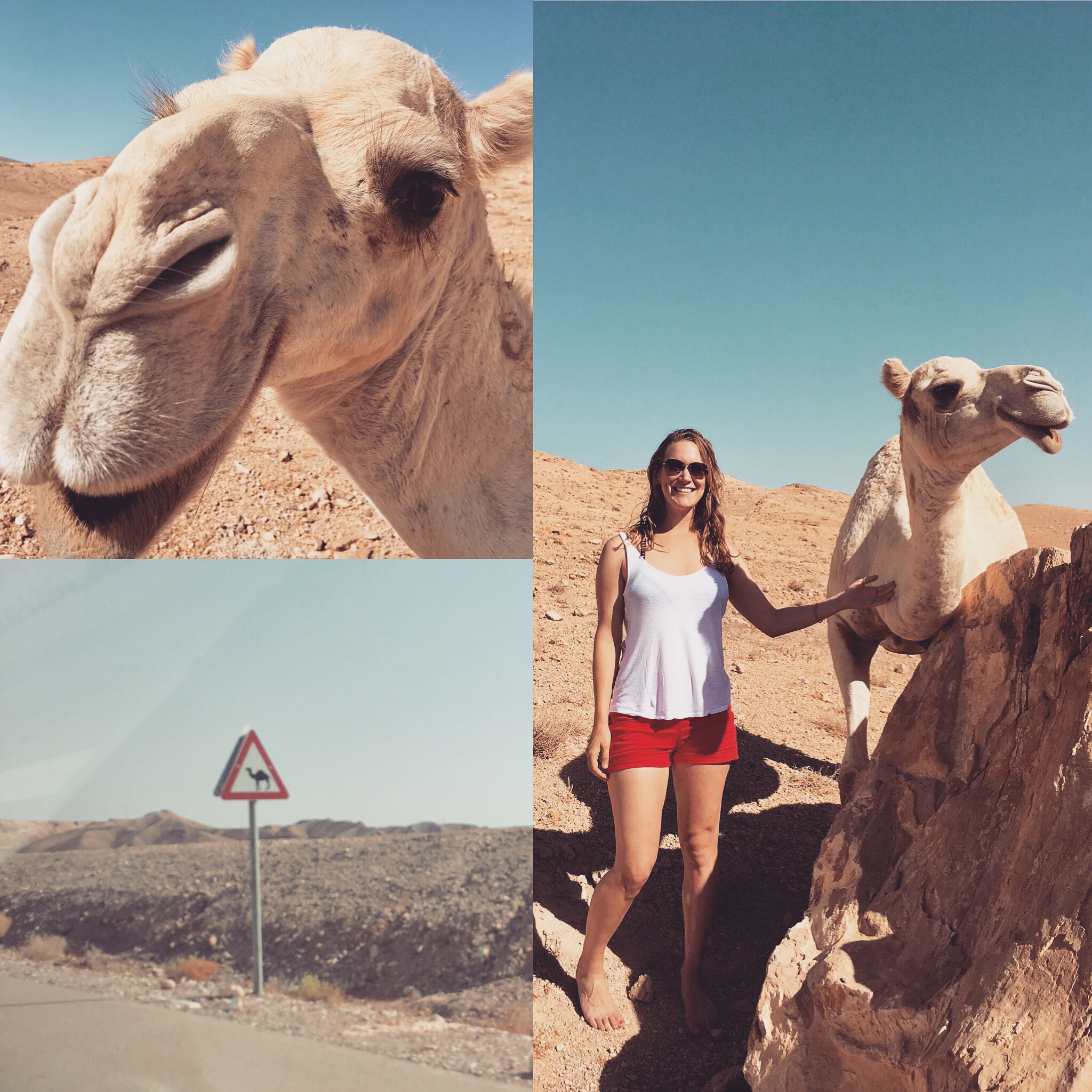 Israel! The furthest east I’ve been! After visiting Scotland and a quick stop in Brussels, I made my way to Israel to meet my boyfriend’s family for the first time. I already knew I loved the deserts of the US Southwest, so I was excited to see the landscape here. Over a two-week visit I got the Israel crash-course, traveling everywhere from the southern tip to the Dead Sea to the great north. I even managed to fit in the holidays of Rosh Hashanah, Yom Kippur (during which it is illegal to drive on any road), and Sukkot. In addition to seeing the deserts, one of my primary goals was finding some awesome camels, because I love animals, so it was a great delight to find roadside camels on one of our last days in the country. After warning me of their fondness for spitting, the shepherd was kind enough to let me approach them.